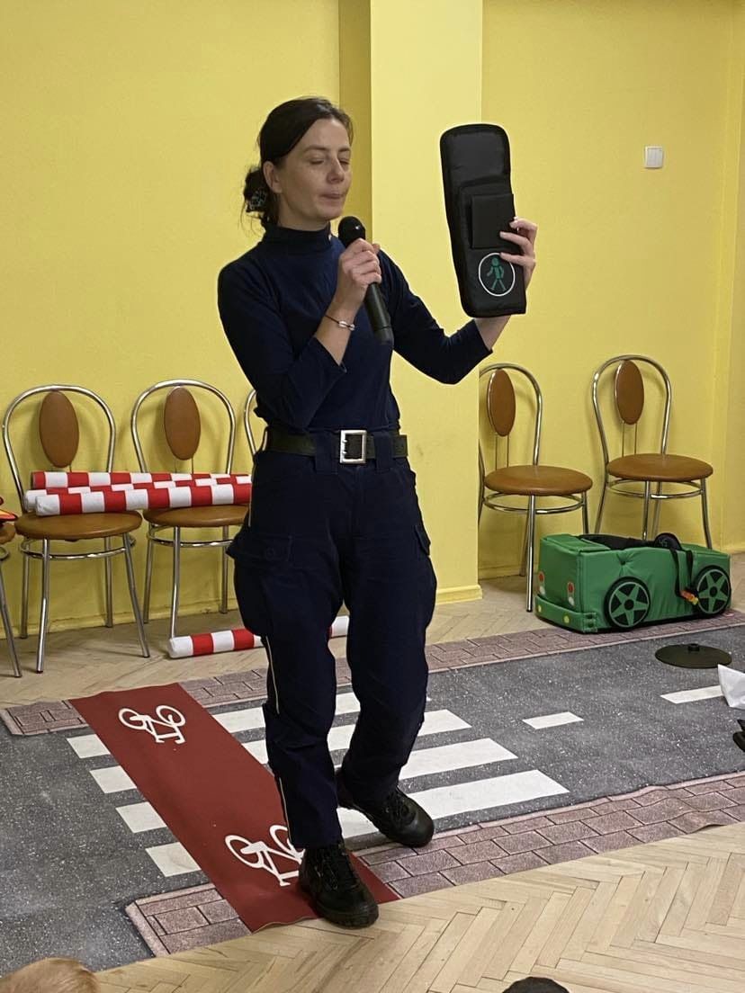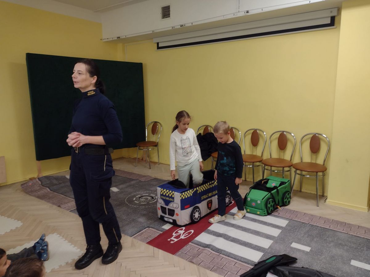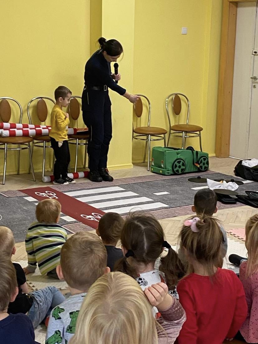 Głównym celem spotkania było przypomnienie najmłodszym uczestnikom ruchu drogowego o podstawowych przepisach i zasadach bezpieczeństwa podczas poruszania się po drodze.