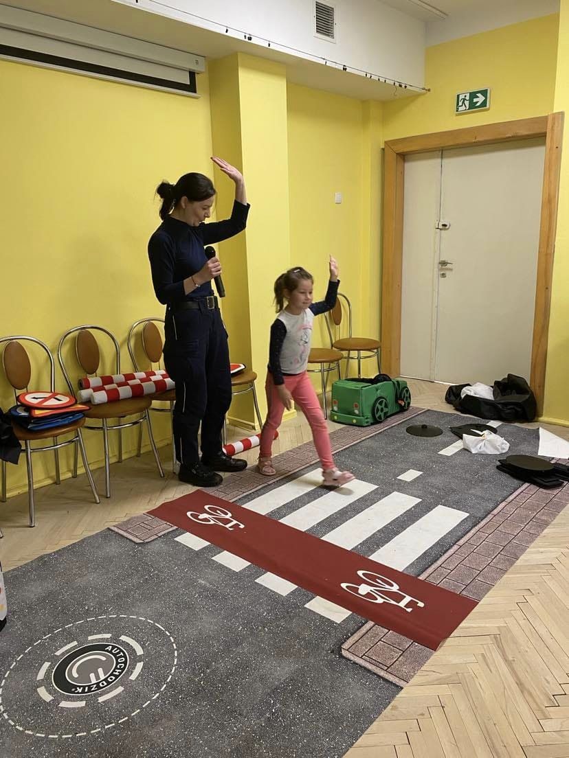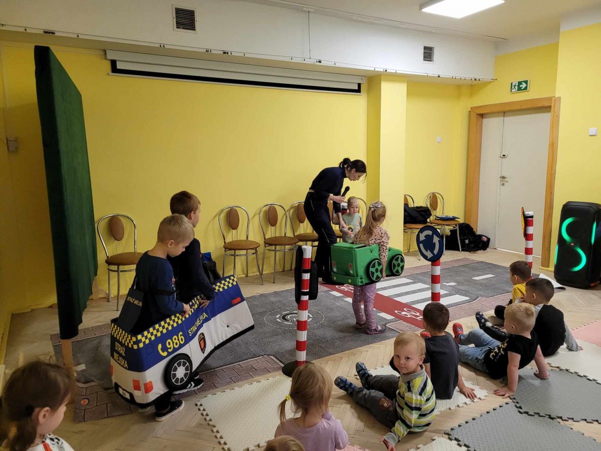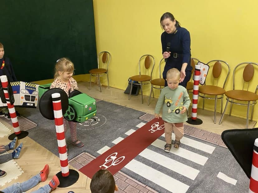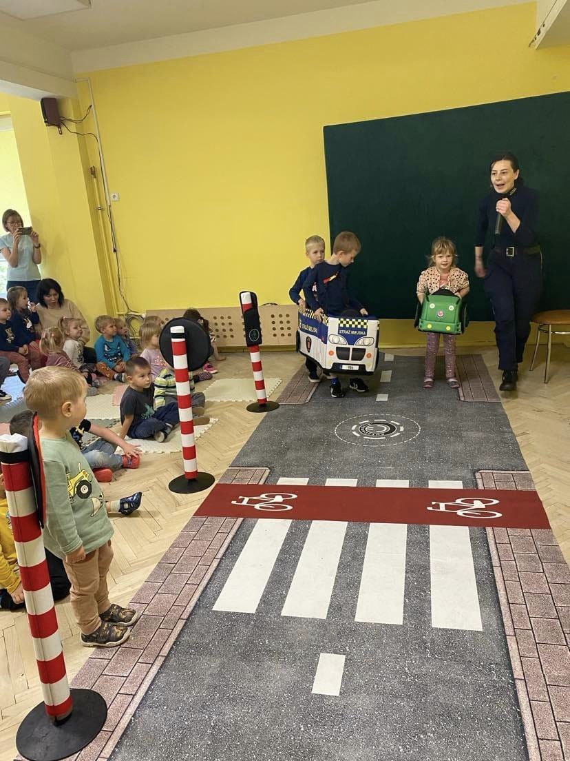 Głównym celem spotkania było przypomnienie najmłodszym uczestnikom ruchu drogowego o podstawowych przepisach i zasadach bezpieczeństwa podczas poruszania się po drodze.