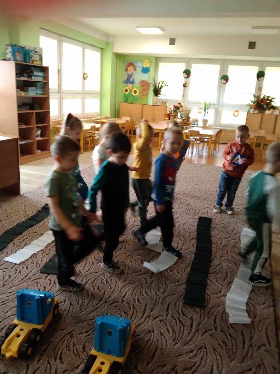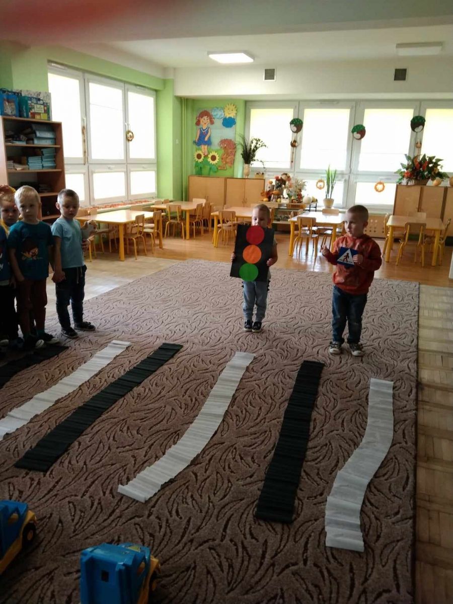 W ramach tej akcji dzieci z grupy IV - "Jeżyki" uczestniczyły w pierwszej lekcji pt. "Bezpieczni w drodze". Dzięki tym zajęciom maluszki utrwaliły zasady ruchu drogowego, poznały numery alarmowe i znaki drogowe. Przedszkolaki obejrzały prezentację multimedialną oraz film edukacyjny pt. "Kazio i bezpieczeństwo na drodze" oraz wykonywały odpowiednie zadania w przedszkolu, a także wspólnie z rodzicami w domu.