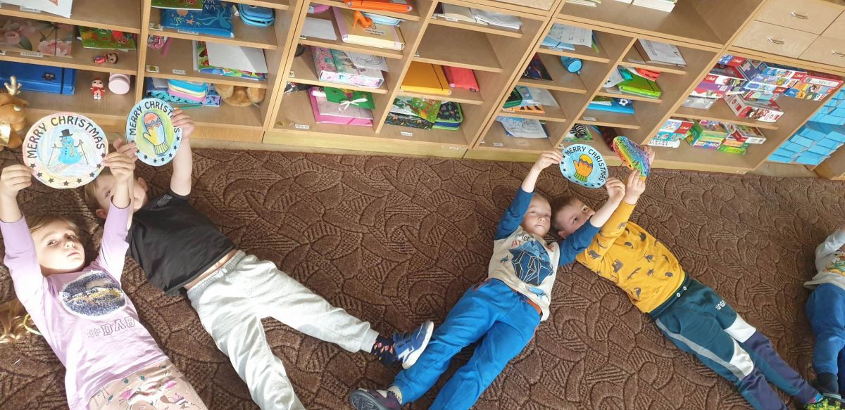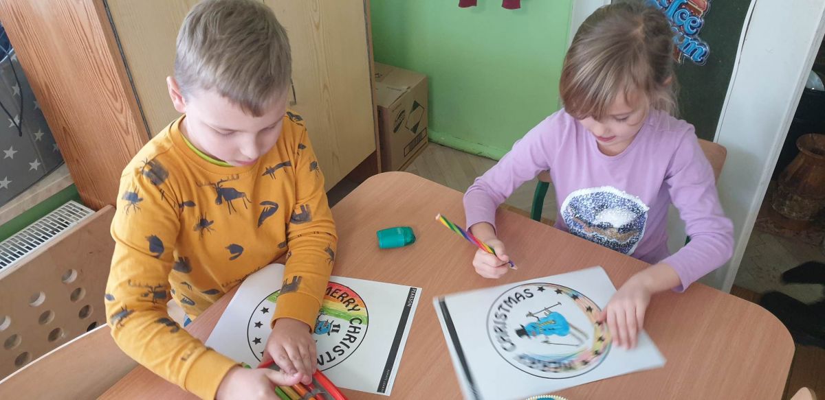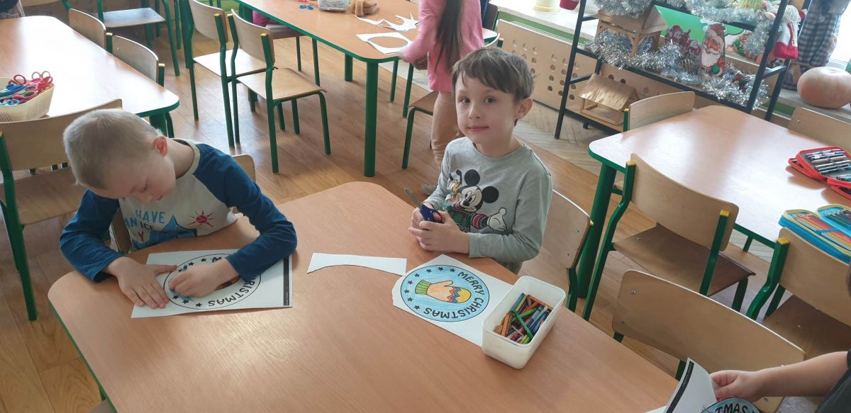 Z tej okazji dzieci podczas zajęć z języka angielskiego wykonały papierowe bombki.