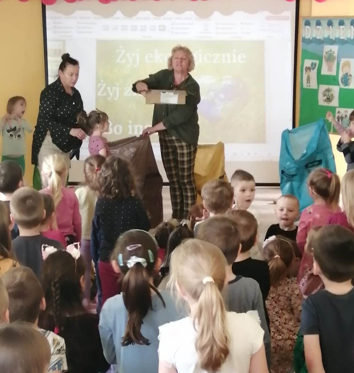 Dzisiaj w naszym przedszkolu odbyła się uroczystość pod hasłem "Dbamy o Ziemię".