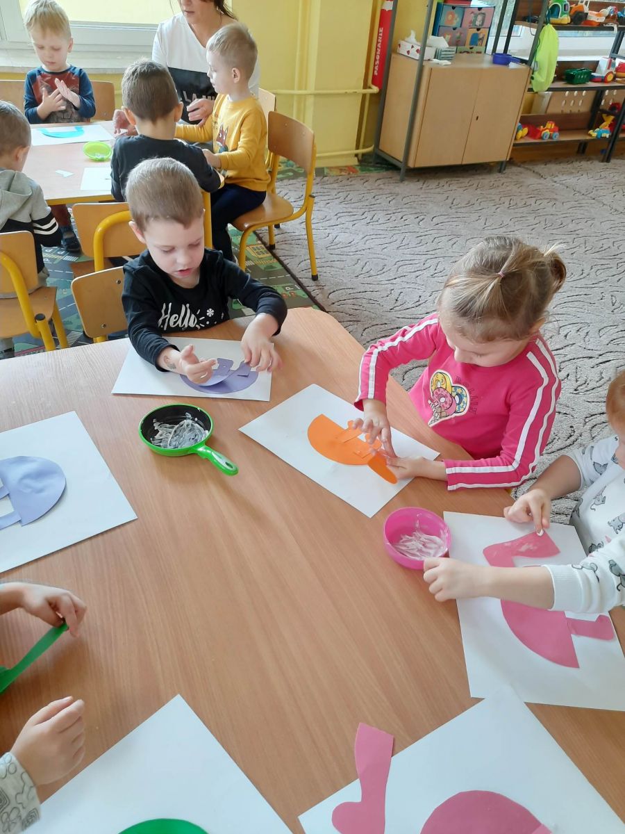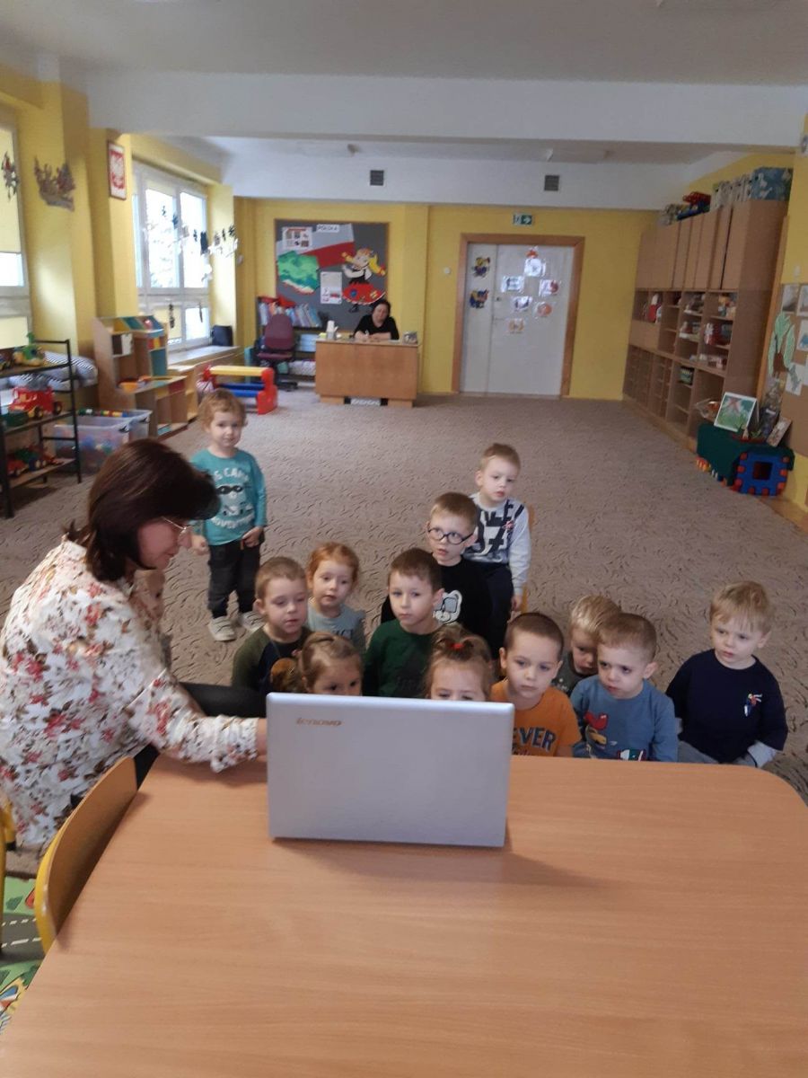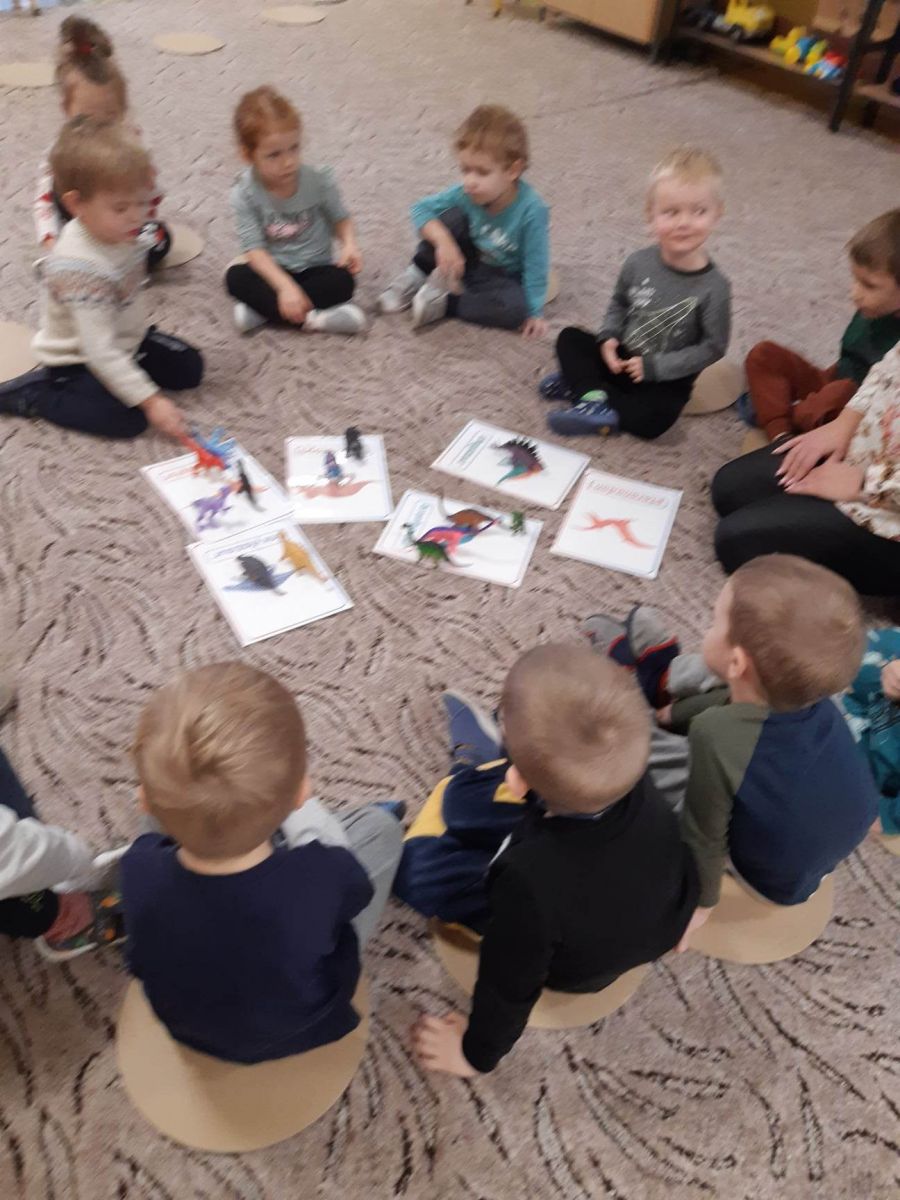 "Biedronki" zamieniły się w paleontologów. Obejrzały krótki film o dinozaurach, ich życiu i wyglądzie. Dzieci poszukiwały prehistorycznych stworów i porównywały je z ilustracjami. Wykonały też swojego dinozaura z gotowych elementów. Trzeba przyznać, że ten temat wzbudził wśród maluszków olbrzymie zainteresowanie. Była to fascynująca podróż do przeszłości.