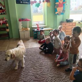 Dziś w grupie "Jeżyków" wspaniały gość - Golden retriever.