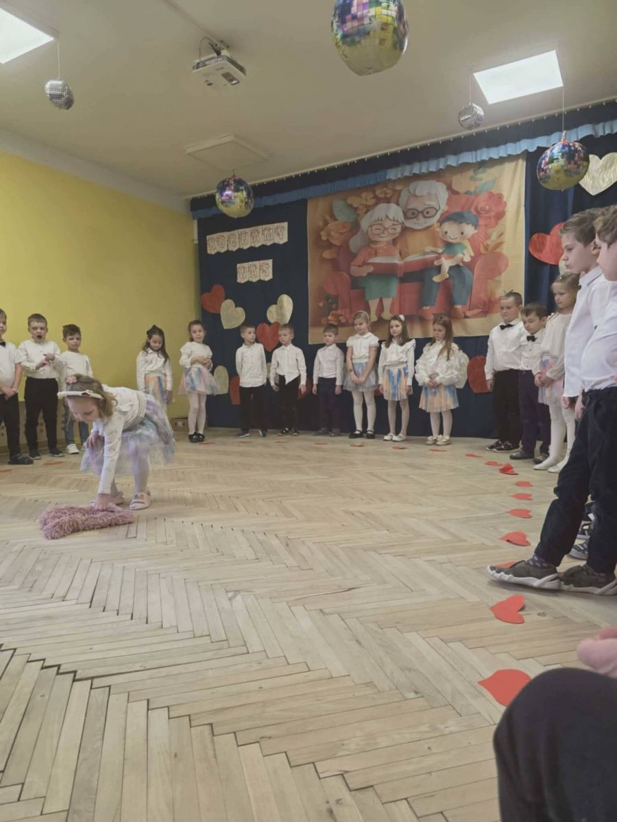 przygotowały dla swoich dziadków program artystyczny z okazji ich święta. Recytowały wiersze pełne humoru i śpiewały piosenki. Program zakończyły rock end rollem. Spotkanie upłynęło w miłej atmosferze, a uśmiechy na twarzach seniorów były największą nagrodą dla przedszkolaków.