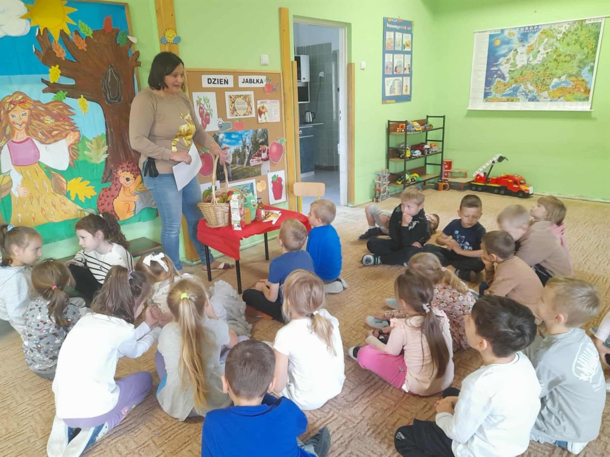 Celem dzisiejszych zajęć było zachęcenie dzieci do spożywania jabłek i przetworów z nich wykonanych. Jabłuszka to doskonałe źródło witamin, posiadają wiele wartości odżywczych, które są potrzebne