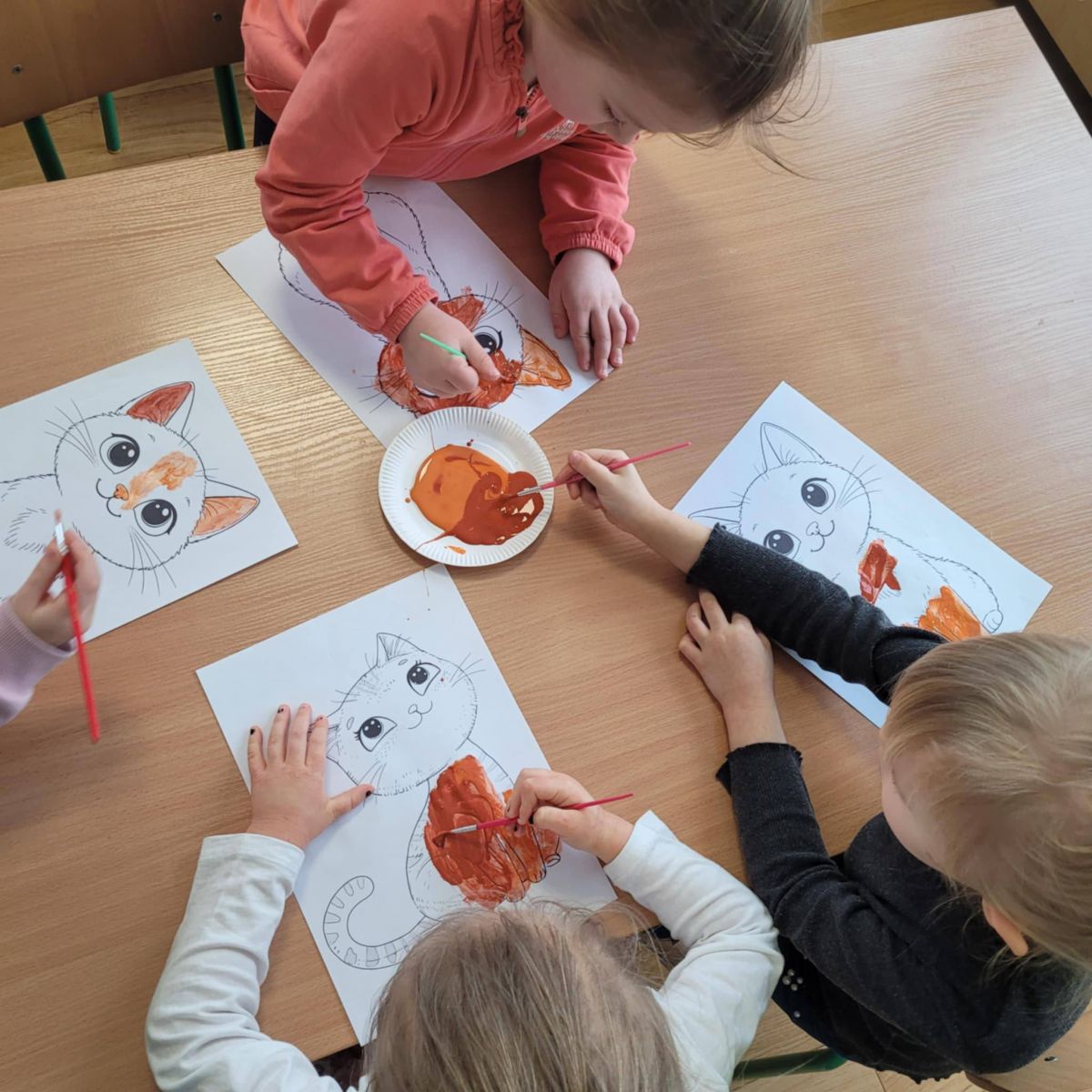 Dzień Kota, odkrywając fascynujące ciekawostki z życia tych czworonogów i doskonale radząc sobie z zagadkami pod hasłem „Kocie sekrety”. Misie poznały kocie zwyczaje i udowodniły, że żadne kocie tajemnice nie są im obce. Mali artyści przelali swoje wizje na papier, tworząc piękne, malowane portrety kotów. Na zakończenie dnia dzieci wspólnie oglądały klasyczną bajkę „Przygody kota Filemona”, śledząc losy ciekawskiego białego kotka.