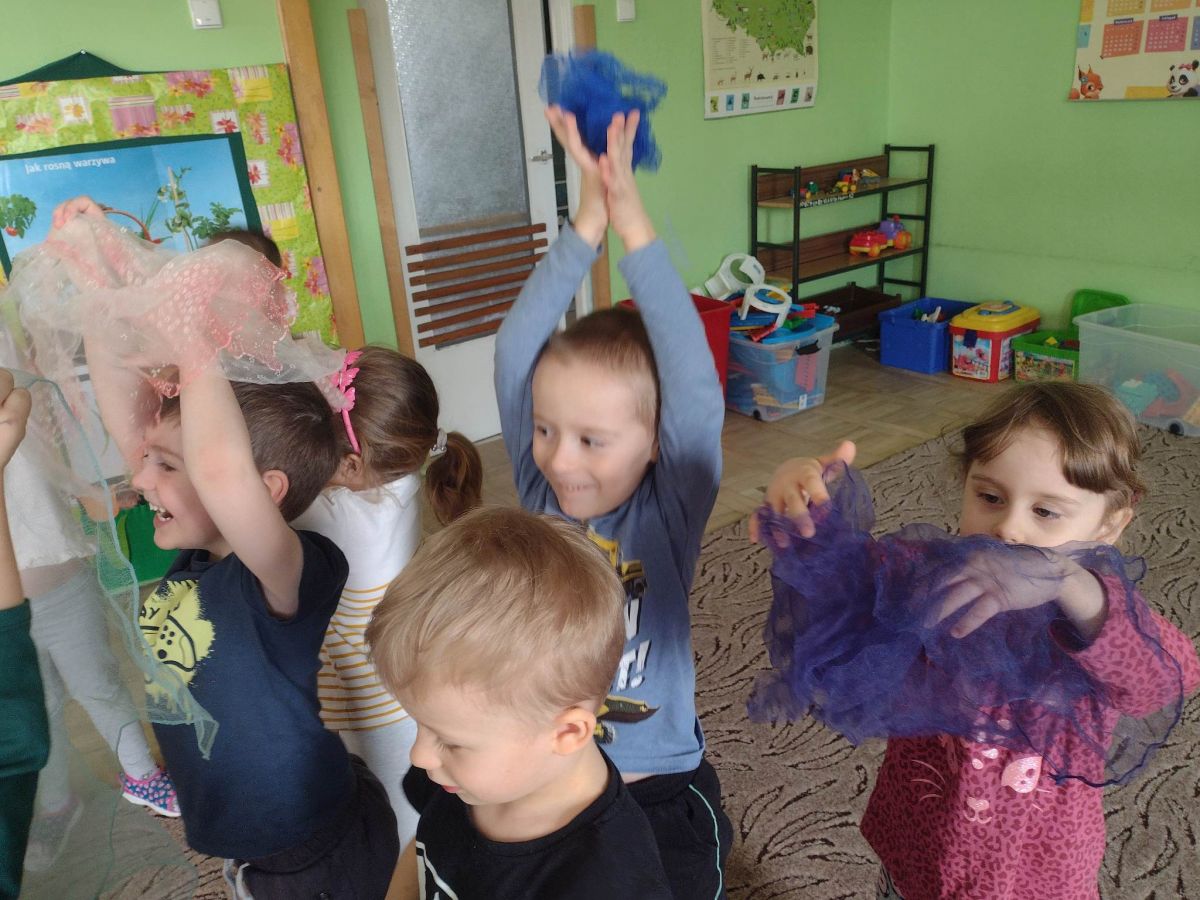 W grupie "Myszek" odbyły się zajęcie p.n. "Idzie wiosna", podczas których dzieci poznały wiosenne kwiaty. Dowiedziały się jakie warunki konieczne są do wzrostu roślin. Chętnie tańczyły i uczestniczyły w zabawach z kolorowymi chusteczkami. Założyły również hodowlę kwiatów cebulowych w kąciku przyrody. A na zakończenie malowały kolorowe kwiaty.![]()