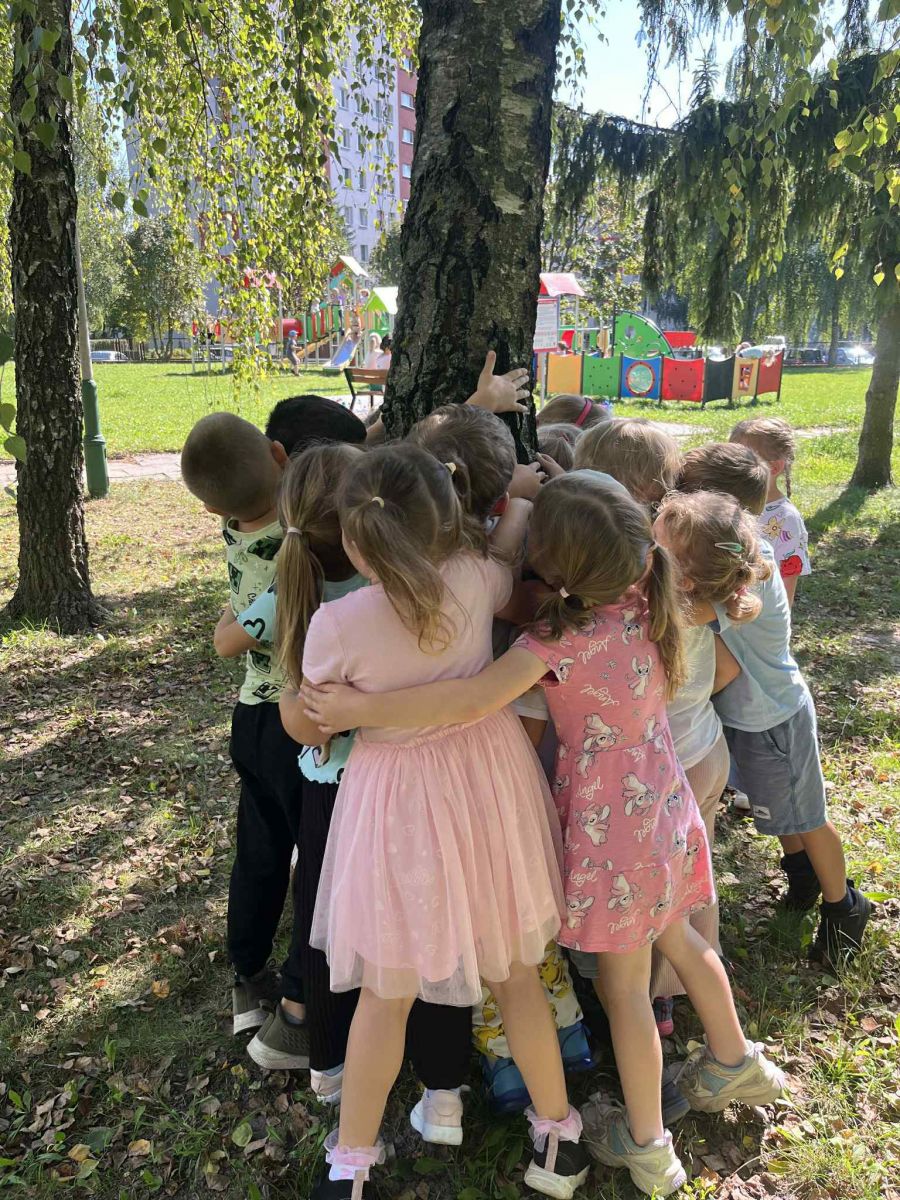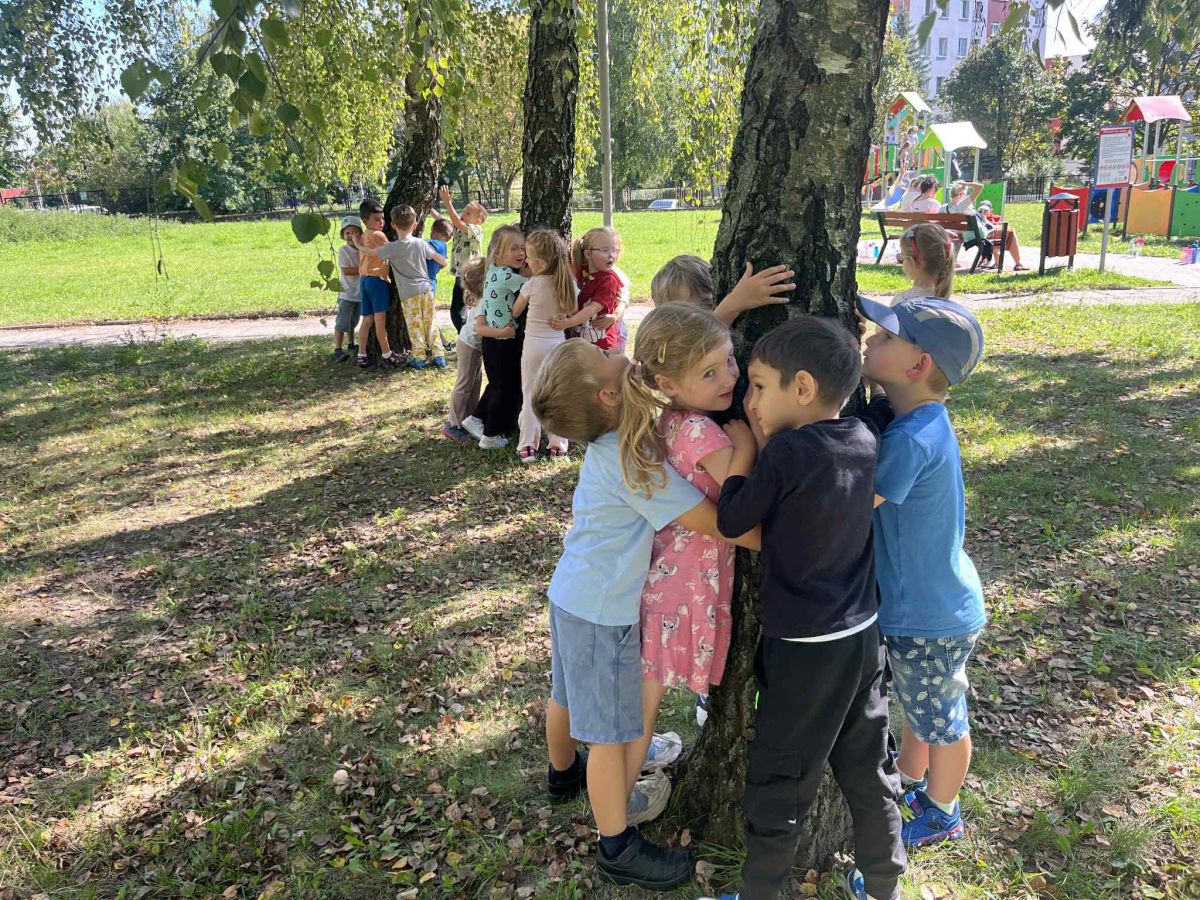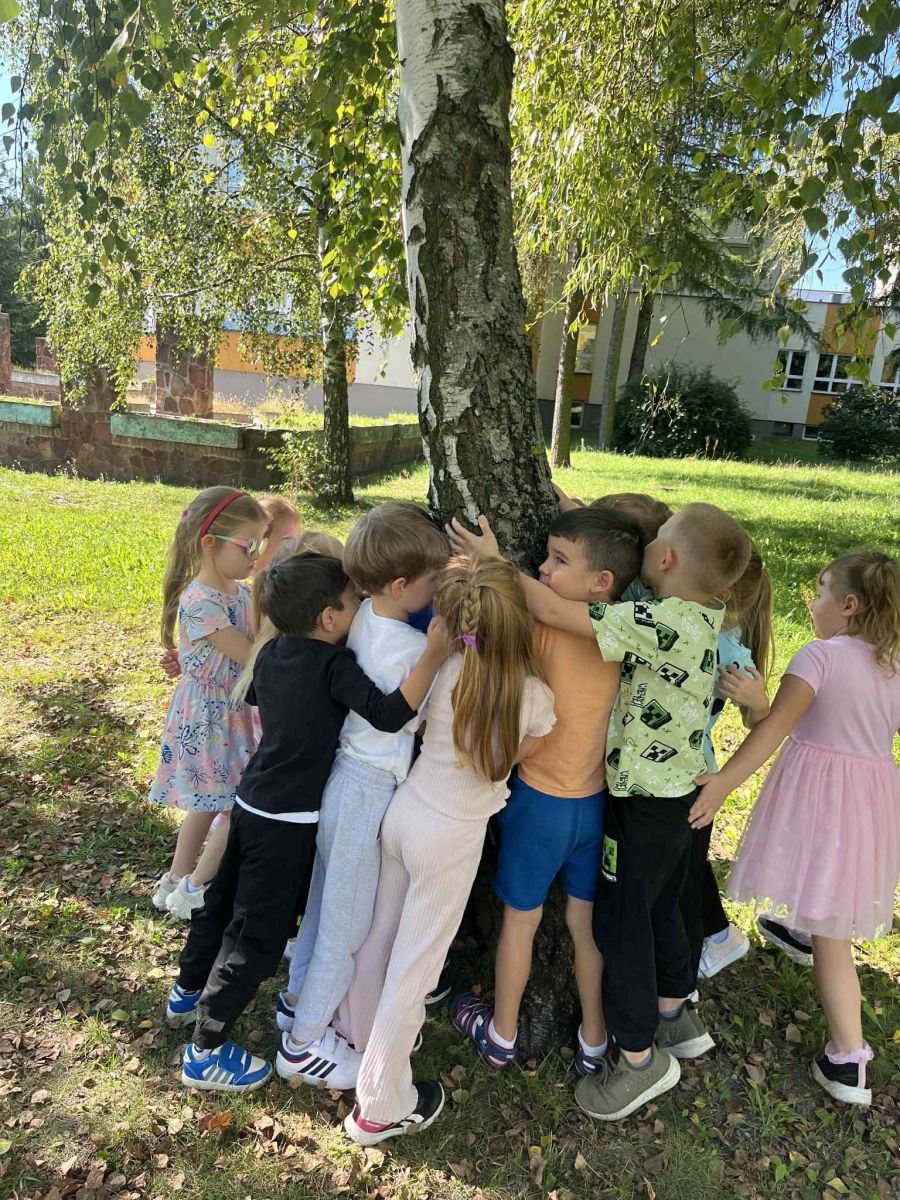 Nasze przedszkole wzięło udział w czwartej edycji ogólnopolskiej akcji „Przytul się do drzewa”! Celem akcji było zwrócenie uwagi na rolę drzew w naszym życiu i środowisku, kształtowanie postaw proekologicznych oraz budowanie więzi z naturą. . Drzewa oczyszczają powietrze, dają tlen, cień w upalne dni i są domem dla wielu gatunków zwierząt. Podczas akcji dzieci z radością przytulały się do drzew, poznawały ich znaczenie. Za udział w akcji otrzymaliśmy certyfikat uczestnictwa, potwierdzający fakt, że nasza placówka jest przyjazna drzewom!