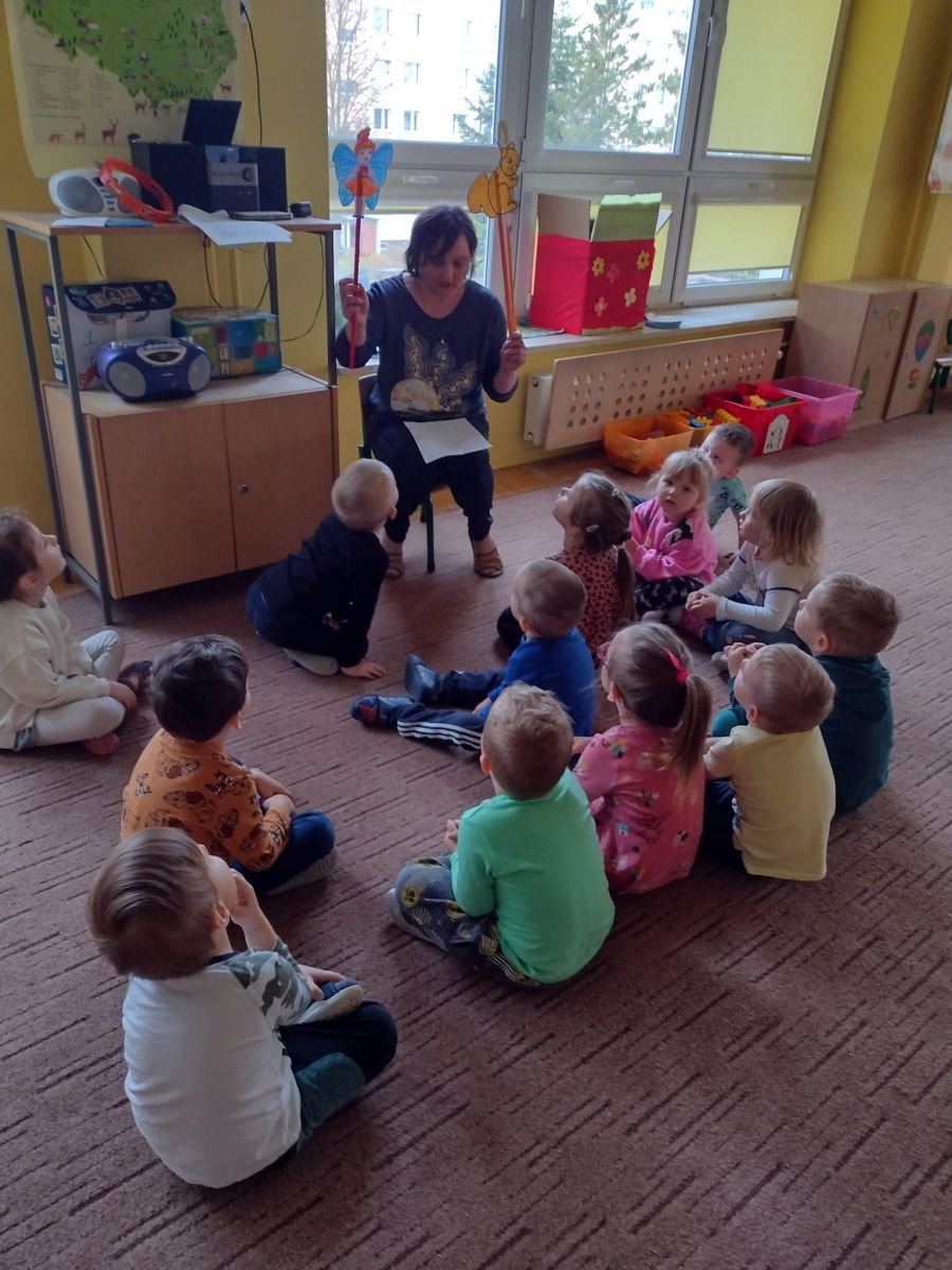 Dzieci z ogromną ciekawością wysłuchały wiersza M. Kownackiej pt. "Agatka i kwiatki". ![]()
