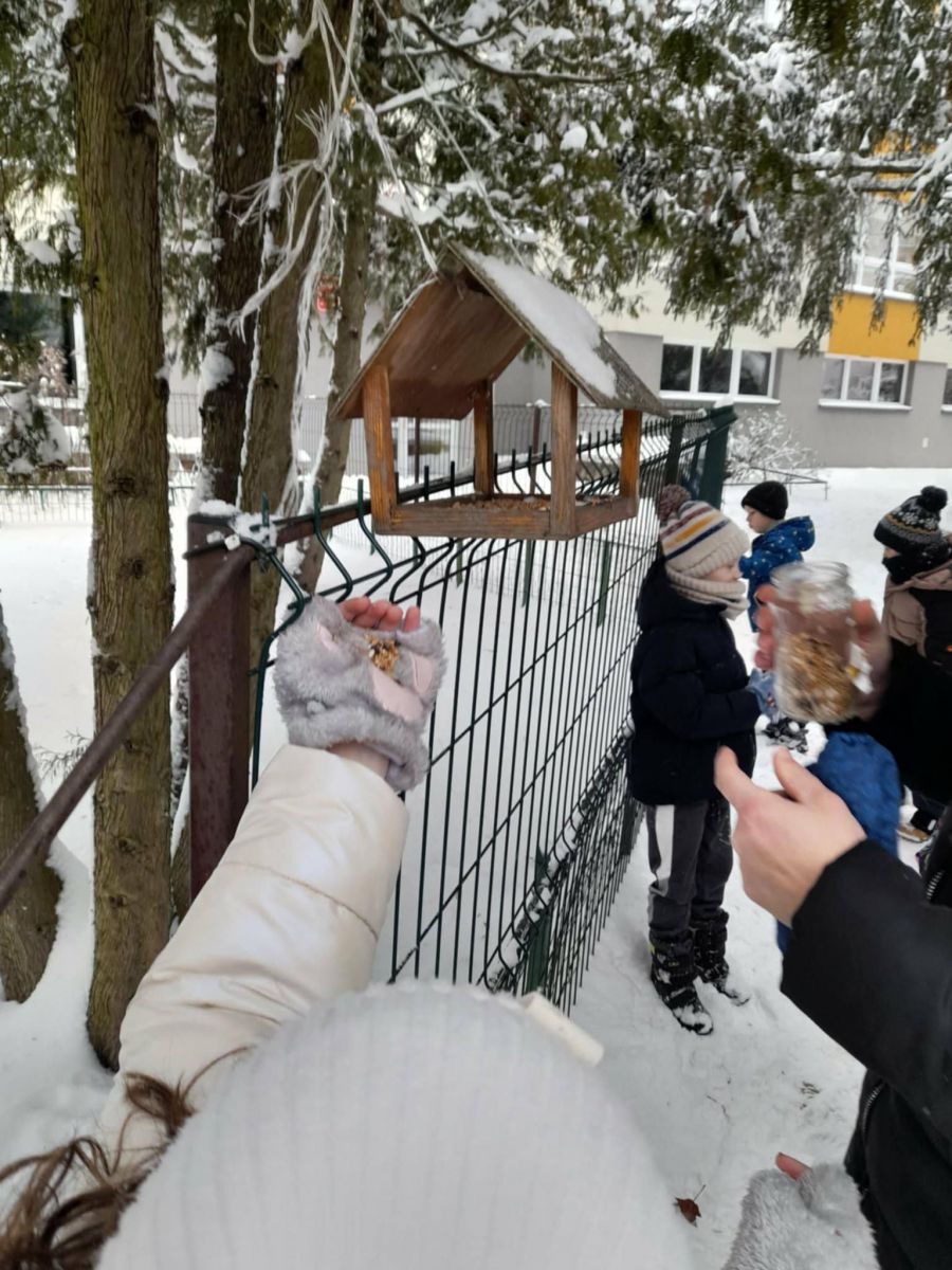 Zimą bardzo trudno ptakom znaleźć pożywienie, dlatego dzieci z grupy JEŻYKI