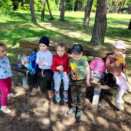 Dzisiaj grupy "Biedronek" i "Krasnoludków" spędziły przedpołudnie na łonie przyrody. Dzieci pojechały na wycieczkę na Stadion Leśny by obserwować las![]()