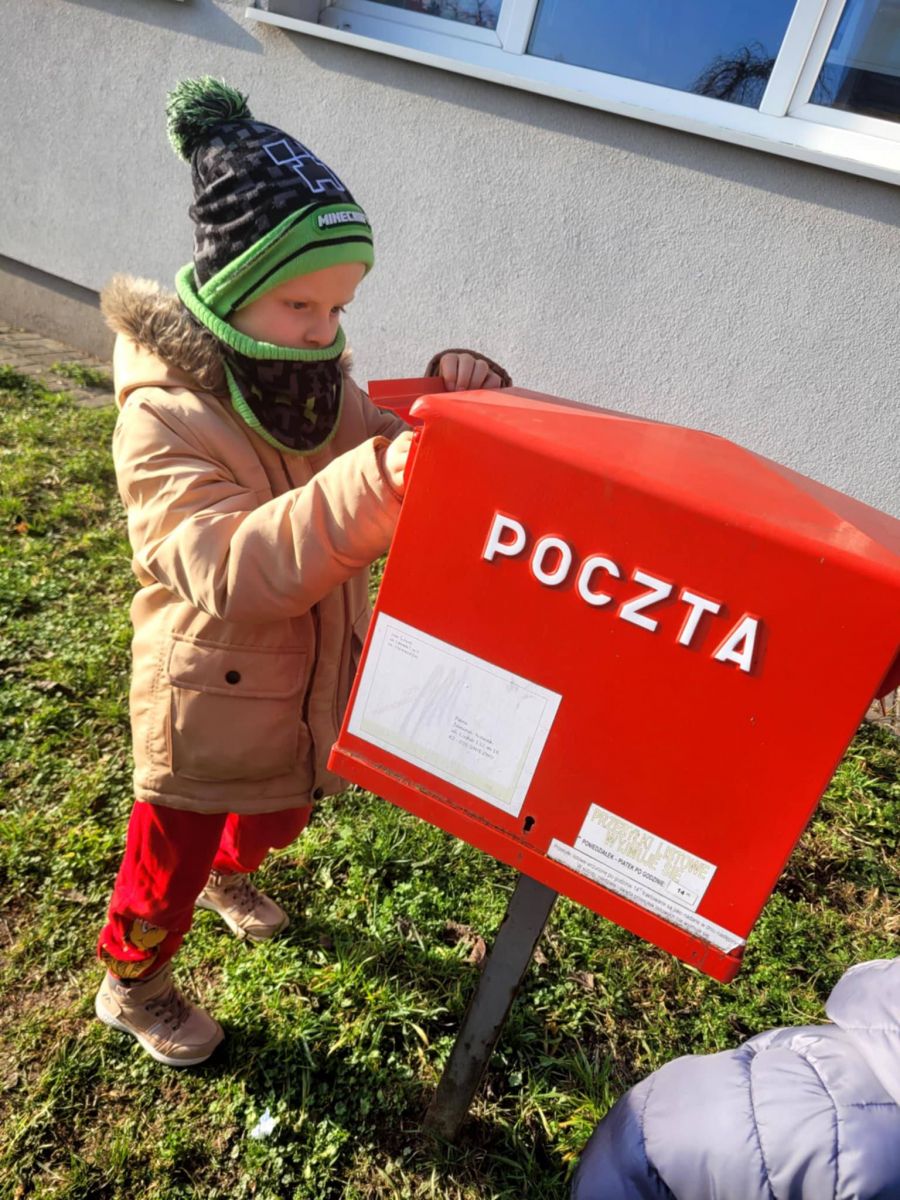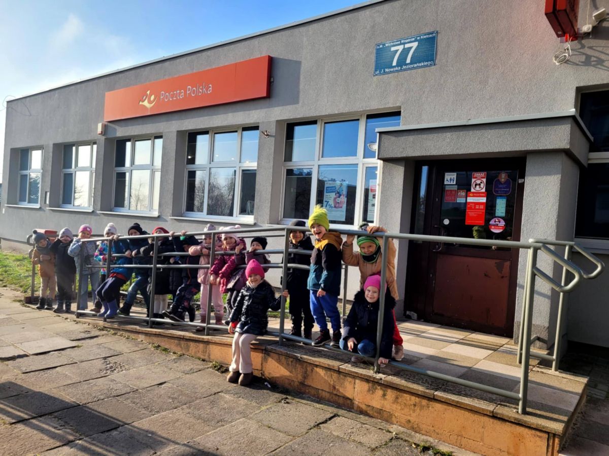 Dziś dzieci z grupy Biedronek wybrały się do pobliskiej poczty, by wysłać świąteczne pocztówki swoim bliskim. Poznały pracę listonosza oraz zakres usług pocztowych. Takie wydarzenia rozwijają świadomość społeczna i przybliżają realne funkcjonowanie instytucji.