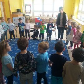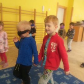 Dzieci z grupy ,,Słoneczek'' i ,,Myszek'' uczestniczyły w zajęciach, których celem jest rozwijanie poczucia akceptacji i chęci niesienia pomocy kolegom z niepełnosprawnościami poprzez polisensoryczne doświadczanie inności na sobie. Dzieci w formie zabawy doświadczały jak trudno na co dzień radzić sobie, gdy nie widzimy, nie słyszymy lub kiedy mamy trudności w poruszaniu się. Dzieliły się swoimi spostrzeżeniami.