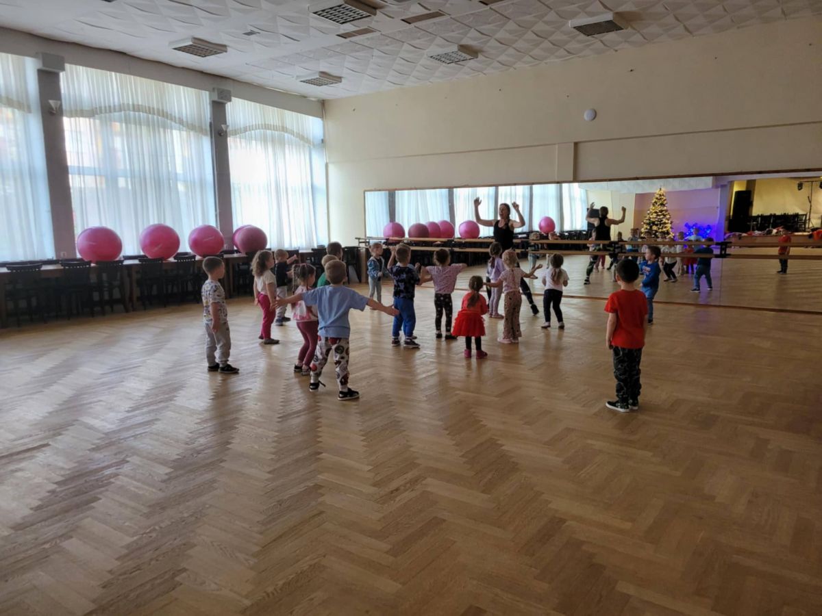 uczestniczyły w zajęciach muzyczno-ruchowych w Dom Kultury Sabat Kielce. Spotkanie odbyło się w wyjątkowo świątecznej atmosferze – salę zdobiła pięknie ustrojona choinka,