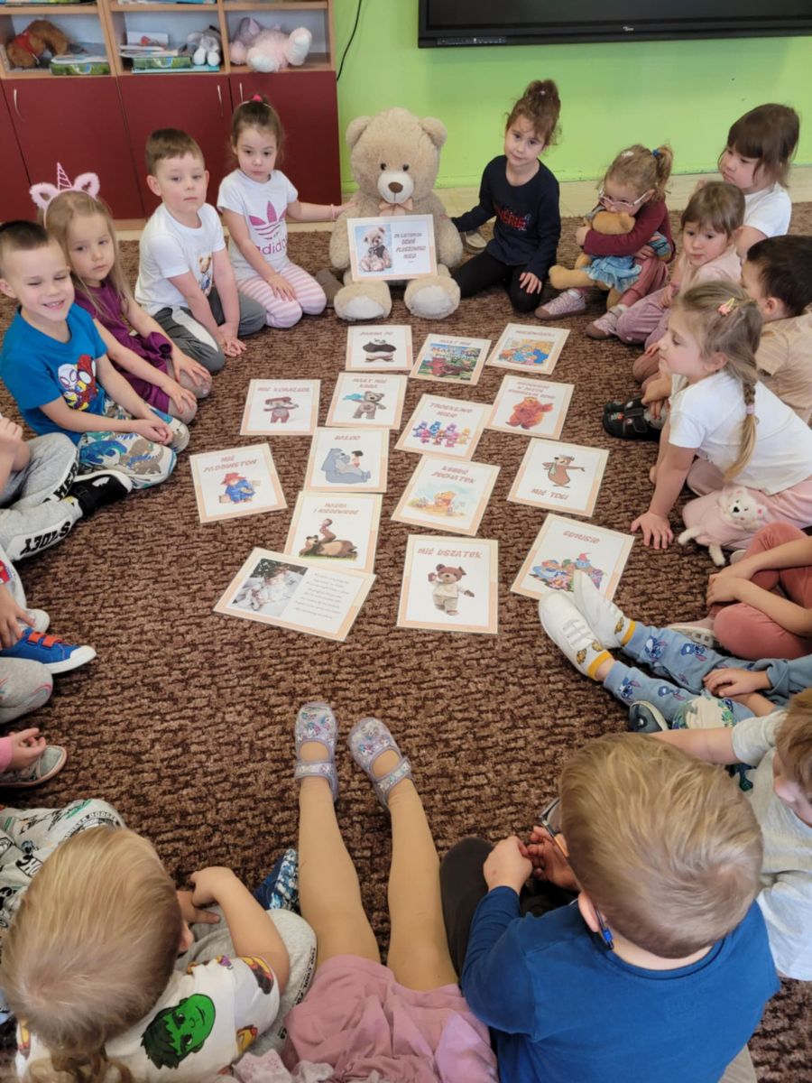 Dziś w naszym przedszkolu obchodziliśmy Dzień Pluszowego Misia. Świętowaniu towarzyszyła wspaniała zabawa. Dzieci z dumą przedstawiły swoich pluszowych przyjaciół, a następnie brały udział w zabawie polegającej na odgadywaniu nazw misiów z ulubionych bajek. Wykonały również śliczne misie z sercami podczas zajęć plastycznych.