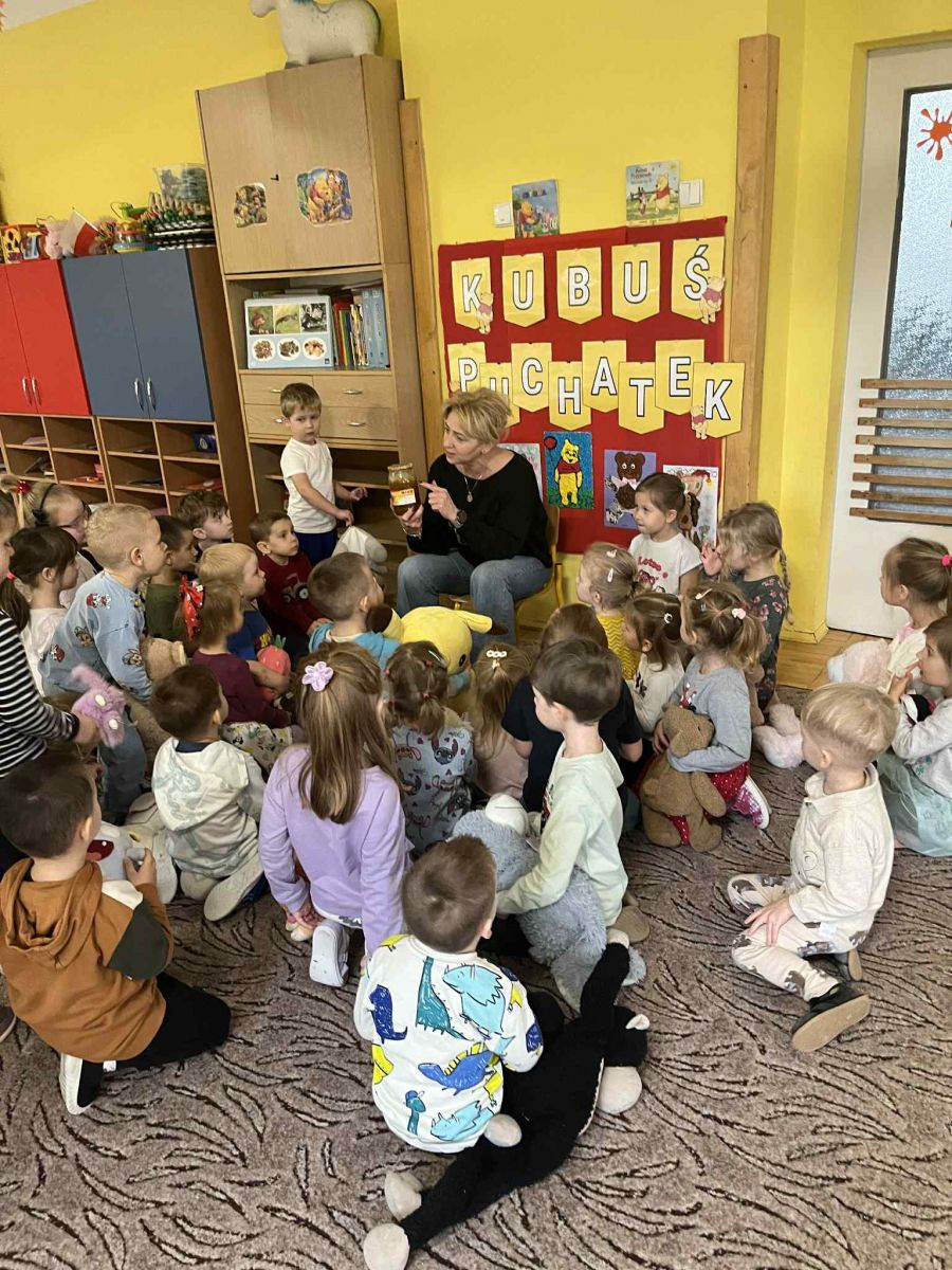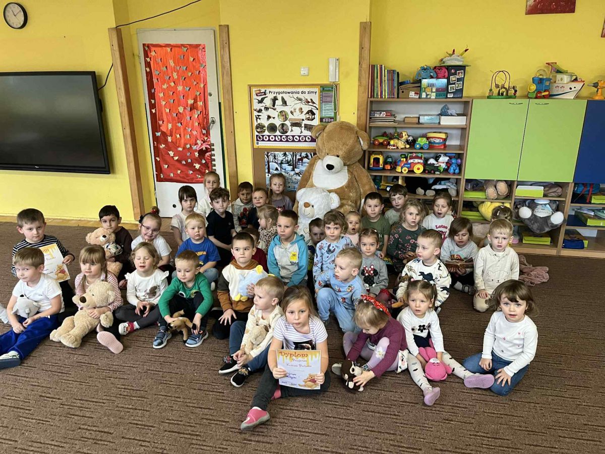 W trakcie spotkania panowała radosna atmosfera, a współpraca między grupami przebiegała wspaniale. Dzieci chętnie wymieniały się spostrzeżeniami, bawiły się razem i nawiązywały nowe relacje. Na zakończenie dzieci otrzymały dyplom przyjaciela ,,Kubusia Puchatka"