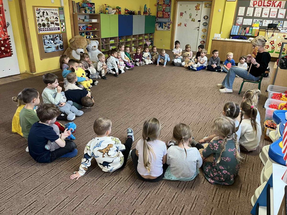 oraz o tym, dlaczego jest on od wielu lat ulubioną zabawką dzieci na całym świecie. Przedszkolaki wysłuchały również opowiadania o misiowych przygodach.