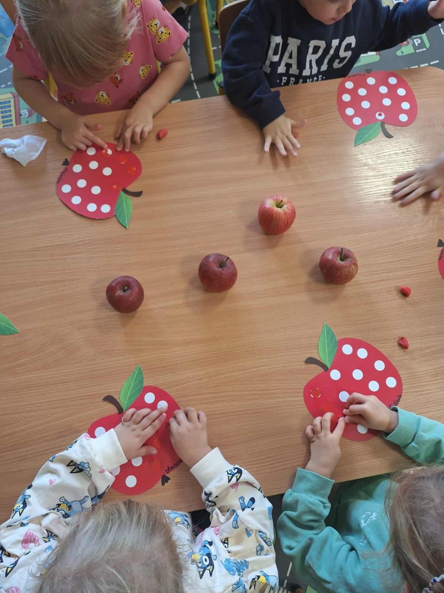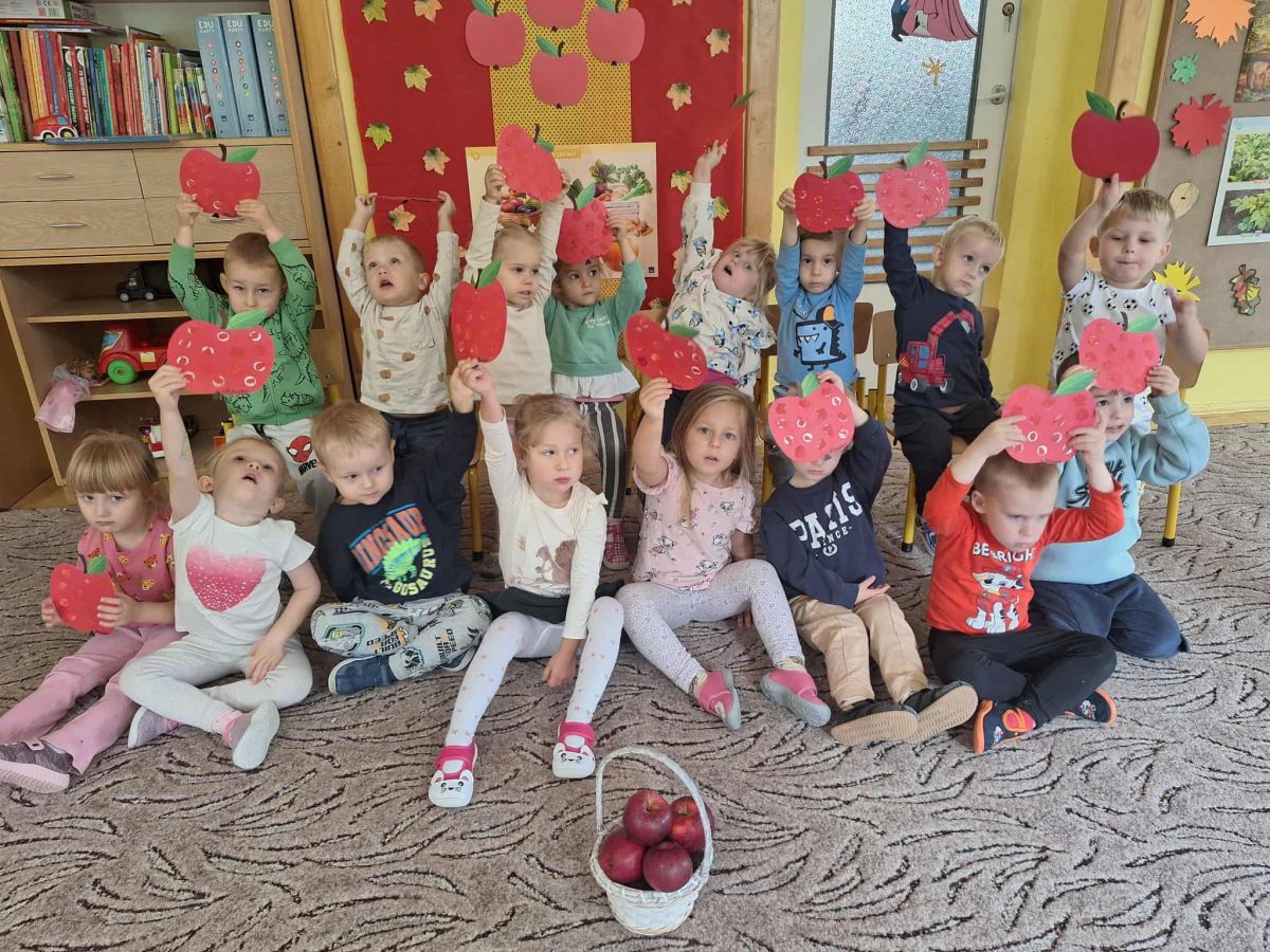 Celem zajęć była integracja dzieci oraz zachęcanie ich do spożywania owoców, a w szczególności jabłek, z powodu ich walorów zdrowotnych i odżywczych. Maluszki poznawały różne gatunki tych przepysznych owoców. Rozpoznawały ich zapach, kolor, smak. Znają już potrawy i przetwory z jabłek. Uwieńczeniem tego zdrowego dnia było wykonanie ciekawej pracy plastycznej.