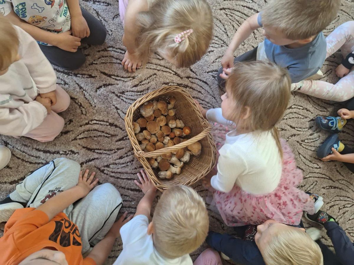 Dzieci, podczas zaj臋膰, pozna艂y grzyby jadalne i truj膮ce - nazywa艂y je i opisywa艂y ich wygl膮d. Dowiedzia艂y si臋 jak nale偶y ubra膰 si臋 do lasu i jak powinny si臋 w nim zachowywa膰.