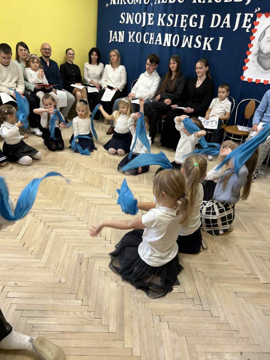 Nie tylko przedstawiliśmy piękne utwory sławnego poety, ale również wysłuchaliśmy przepięknych pieśni zaprezentowanych przez uczennice ZSM. Cudownie było również obejrzeć taniec pn. "Modlitwa o deszcz" wykonany przez dziewczynki z klas zerowych.