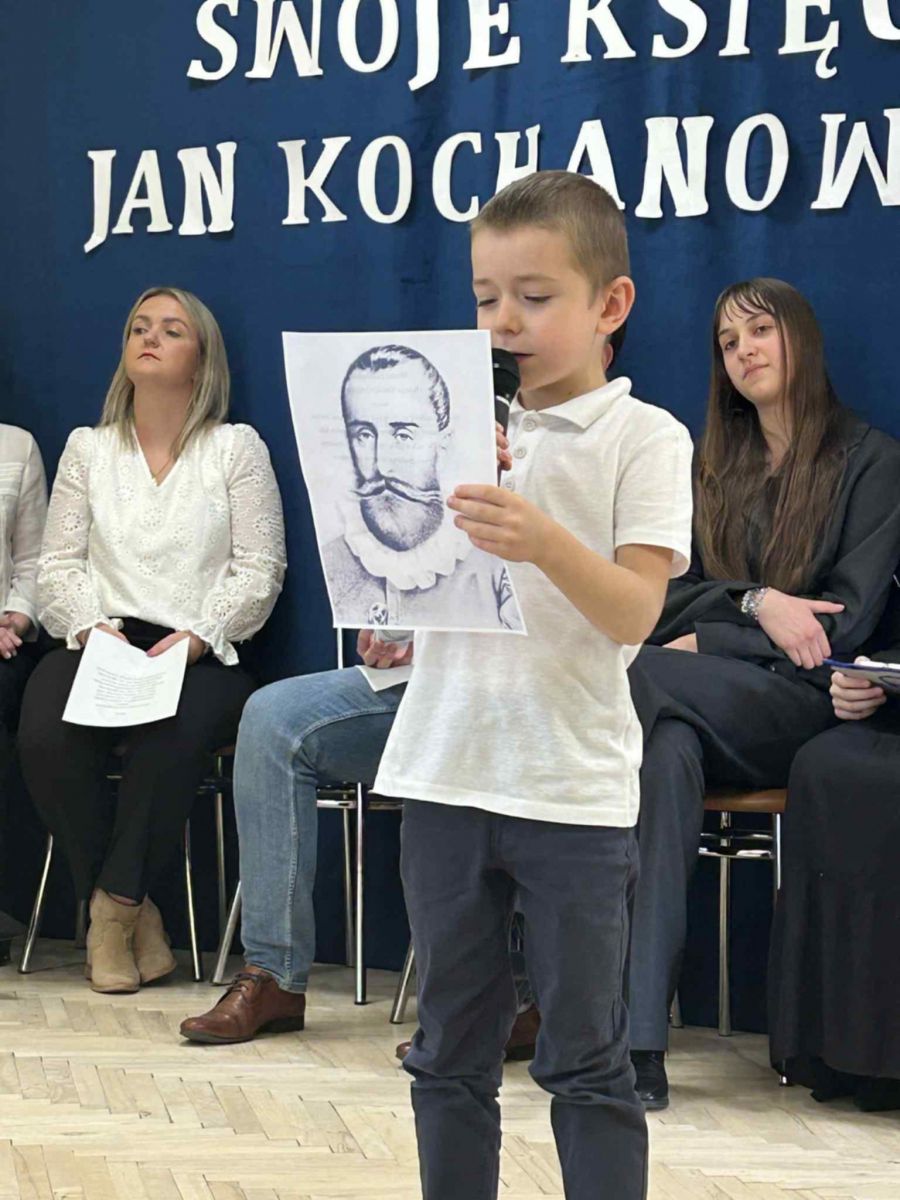 Nasi goście przedstawili maluszkom postać Jana Kochanowskiego i jego twórczość. Wspólnie czytaliśmy fraszki, treny i pieśni słynnego poety - człowieka, który wdarł się "na skałę pięknej Kalijopy, gdzie dotychczas nie było znaku polskiej stopy."