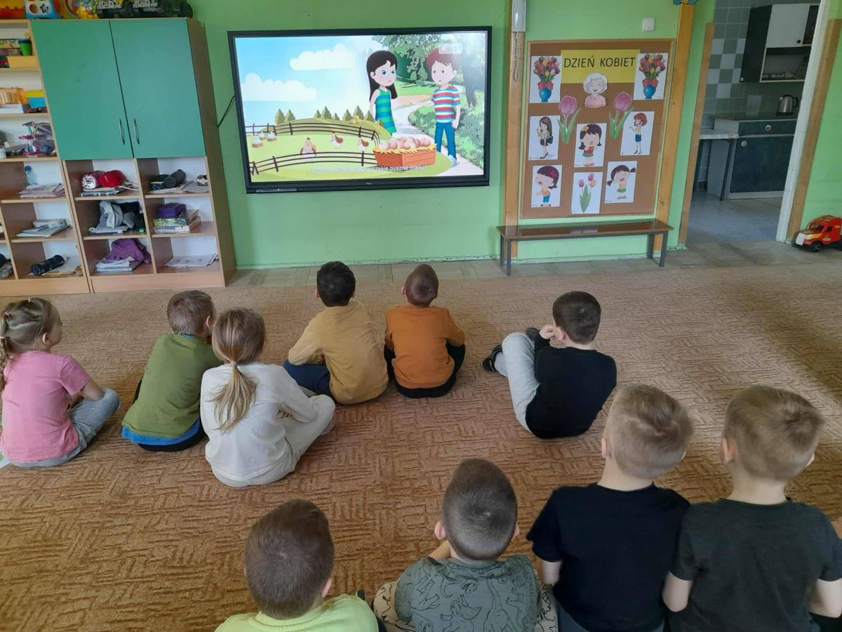 Podczas zajęć dzieci poznały znaki "eko", które umieszczane są na produktach, oglądały film edukacyjny pt. "Skąd się biorą produkty ekologiczne' i