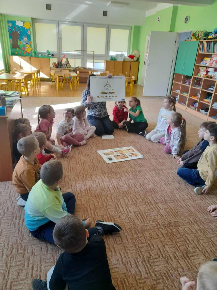 omówiły znaczenie Piramidy Zdrowego Żywienia. Dzięki dzisiejszym zajęciom przedszkolaki wiedzą, że "eko" oznacza naturalne czyli takie, które nie ma żadnych dodatków i jest zdrowe.