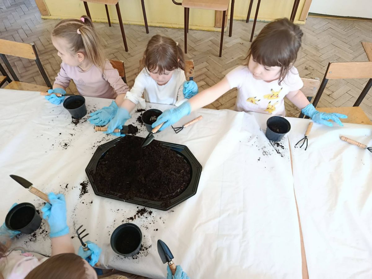 W zajęciach, z dużym zaangażowaniem, uczestniczyły dzieci z grup „Misie” oraz „Krasnoludki”. Przedszkolaki z ogromnym zainteresowaniem słuchały wskazówek prowadzącej, a następnie z radością tworzyły swoje dzieło. Każde dziecko mogło poczuć się jak mały ogrodnik i odkrywca.