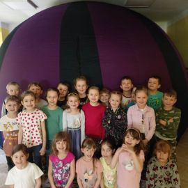 Dziś przedszkolaki odbyły wspaniałą podróż z Planetarium - Ekologia. Poznały sposoby ochrony naszej Planety, Ziemi, przed niekorzystnymi skutkami zmian klimatycznych spowodowanych dewastacją przyrody. Miały możliwość obejrzenia filmu o życiu i przyczynach wyginięcia dinozaurów.