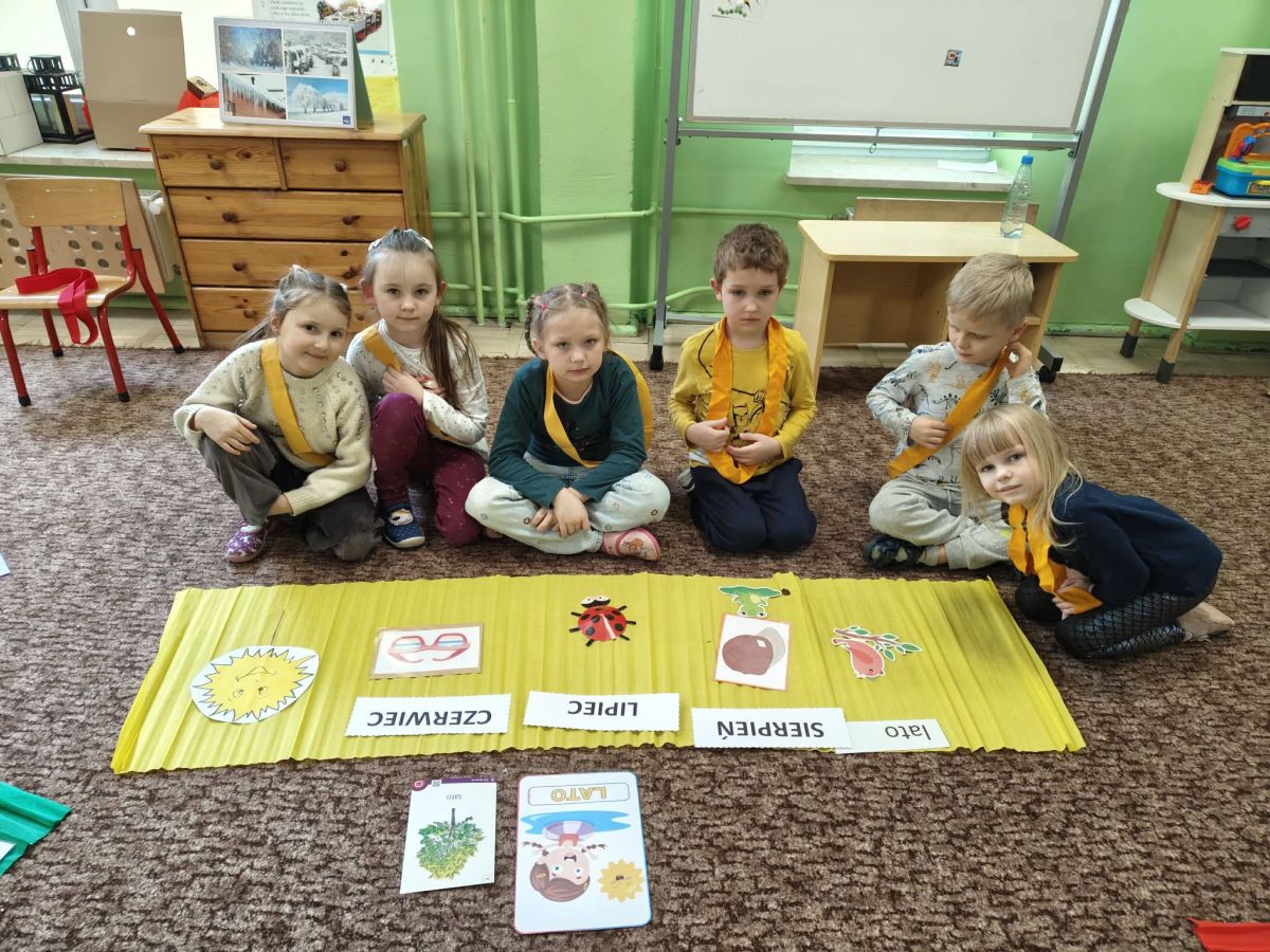 "Biedronki" utrwalały nazwy pór roku wraz z ich charakterystycznymi cechami. Poznały także nazwy miesięcy.