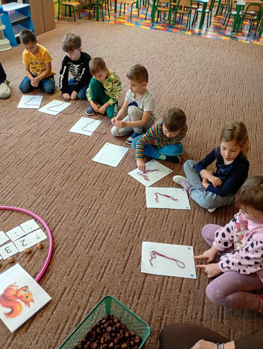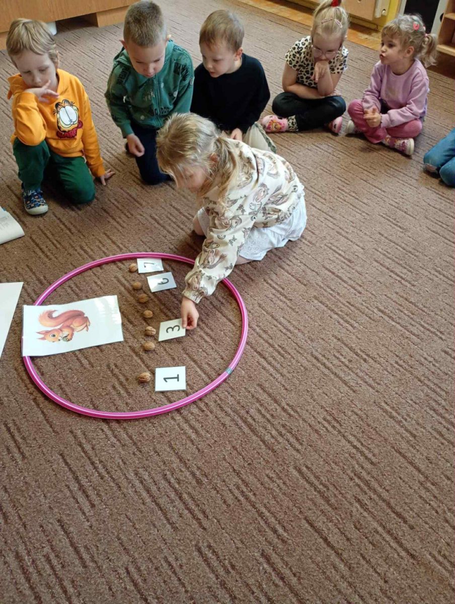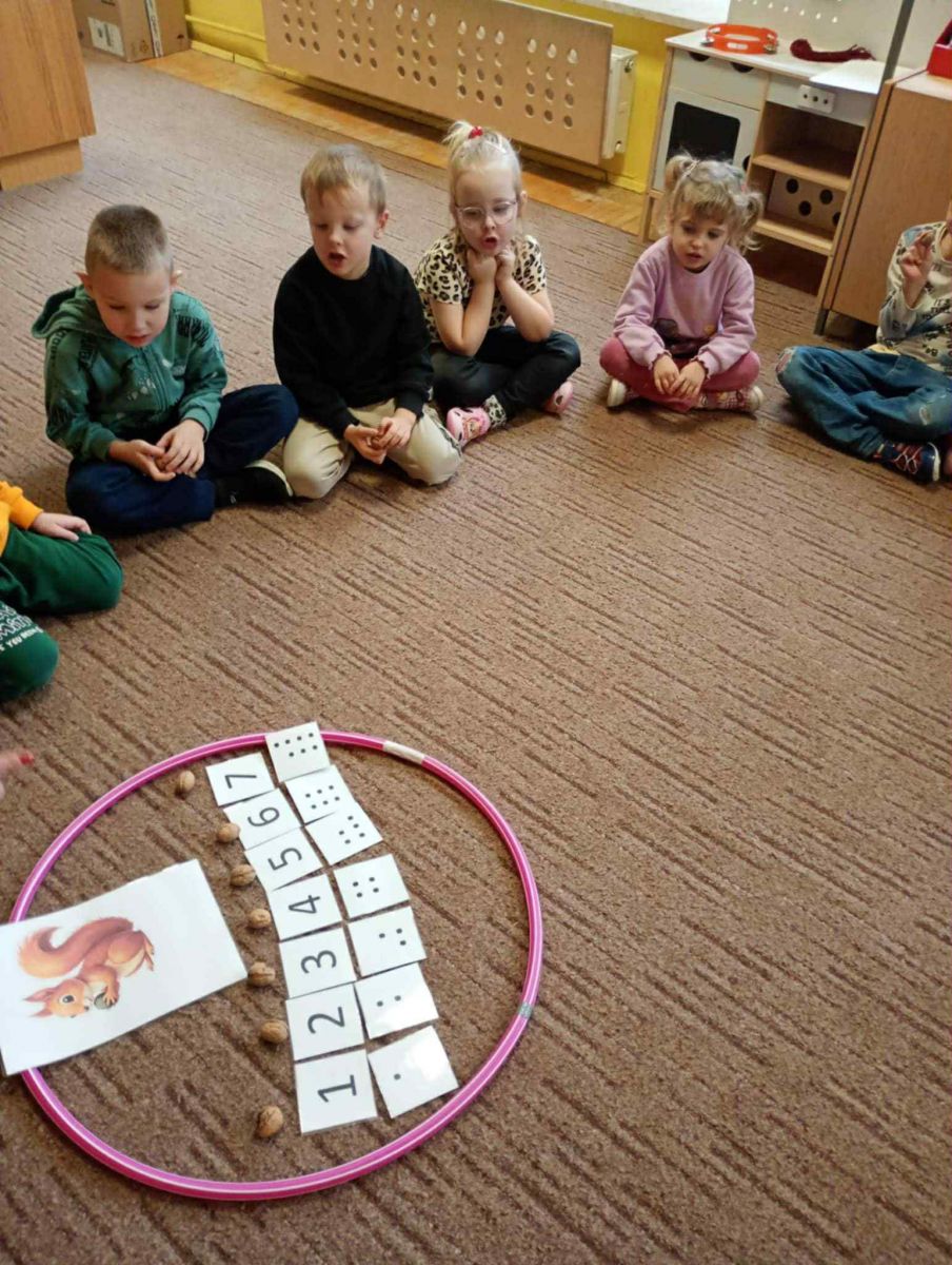Dziś w naszym przedszkolu pojawiła się mała, pracowita wiewiórka, która przygotowuje swoje jesienne zapasy. Dzieci pomagały jej policzyć orzechy, żołędzie i szyszki – okazało się, że wiewiórka zebrała dokładnie 7 skarbów! Przedszkolaki poznały zapis graficzny liczby 7, układały ją z kasztanów oraz włóczki, tworzyły własne „wiewiórcze zapasy”. Korzystały także z aplikacji Wordwall, która pomogła im utrwalić nową liczbę poprzez interaktywne zadania. Nauka przez zabawę to coś, co lubimy najbardziej!