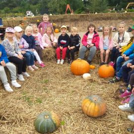 Dziś "Słoneczka'' i "Myszki'' odwiedziły wyjątkowe miejsce, jakim jest Dyniowa Planeta. Na kilku poziomach znajdują się tam piękne aranżacje, pomysłowe rekwizyty i, oczywiście, niesamowite dynie. Znaleźć można m.in. bele siana, taczki, powóz, skrzynie, traktor, do którego można wejść i pięknego żuka. A wszystko w towarzystwie setek, różnego rodzaju, dyń! Dzieci miały okazję poznać historię tej rośliny od nasionka do owocu i przyjrzeć się jej uprawie. Chłonęły przy tym prześliczne widoki, podziwiały dynie i zrobiły sobie niezapomniane zdjęcie.