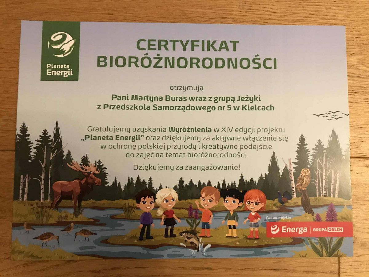 Z dumą informujemy, że grupa Jeżyki została wyróżniona w XIV edycji programu Planeta Energii.