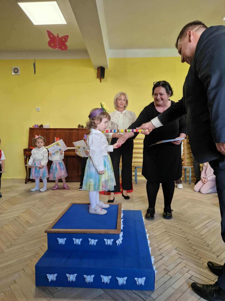 Nasze maluszki z dumą zaprezentowały swoje umiejętności – śpiewały, recytowały i tańczyły, a na zakończenie zostały oficjalnie przyjęte do grona przedszkolaków przez Wicewojewodę Świętokrzyskiego Pana Michała Skotnickieqo, który zaszczycił nas swoją obecnością w tym jakże ważnym dniu i Panią Dyrektor Beatę Duszyńską.