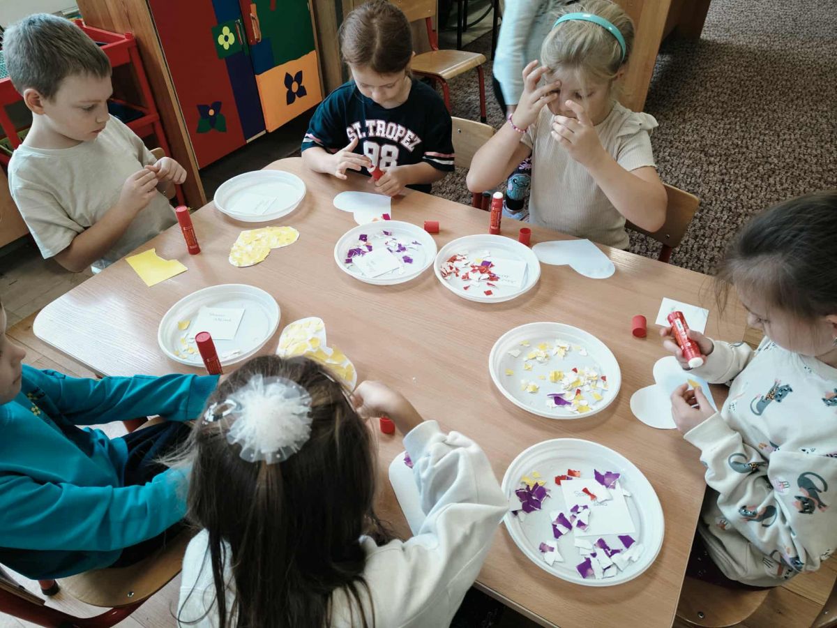 Wykonały piękne papierowe serduszka i puściły "iskierkę" na znak wspólnej przyjaźni w grupie.