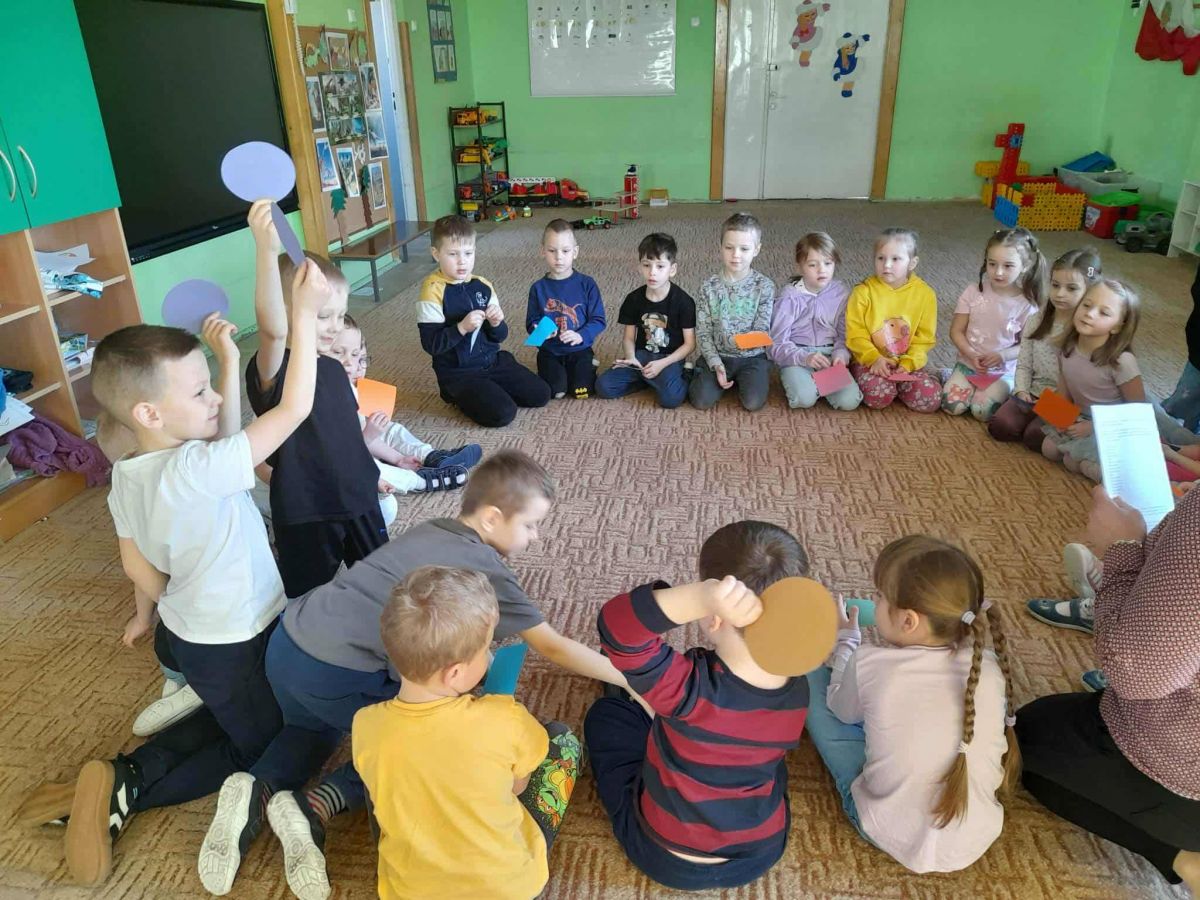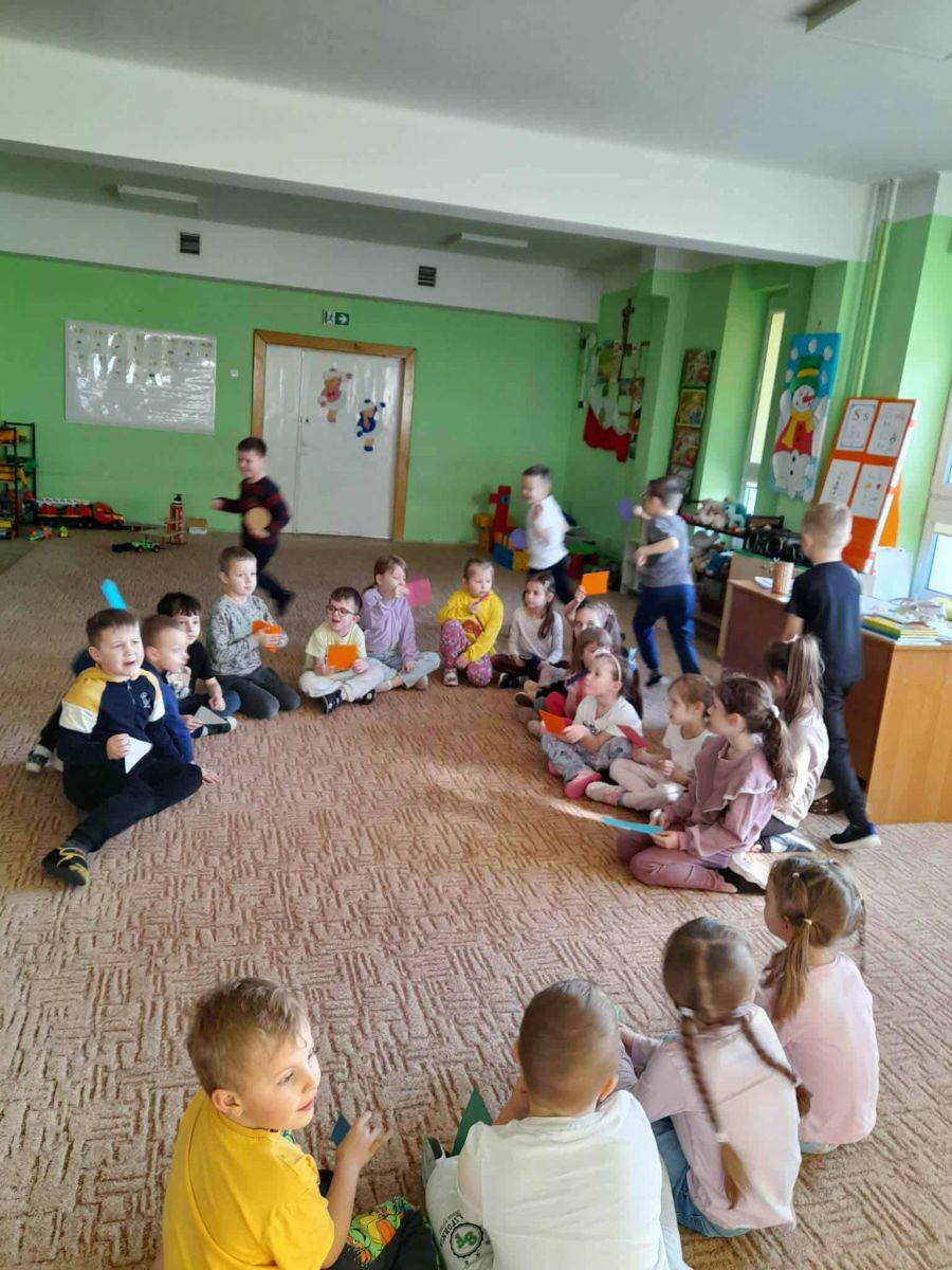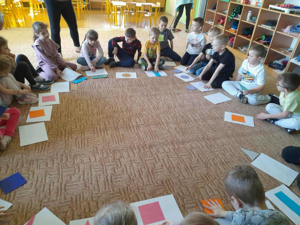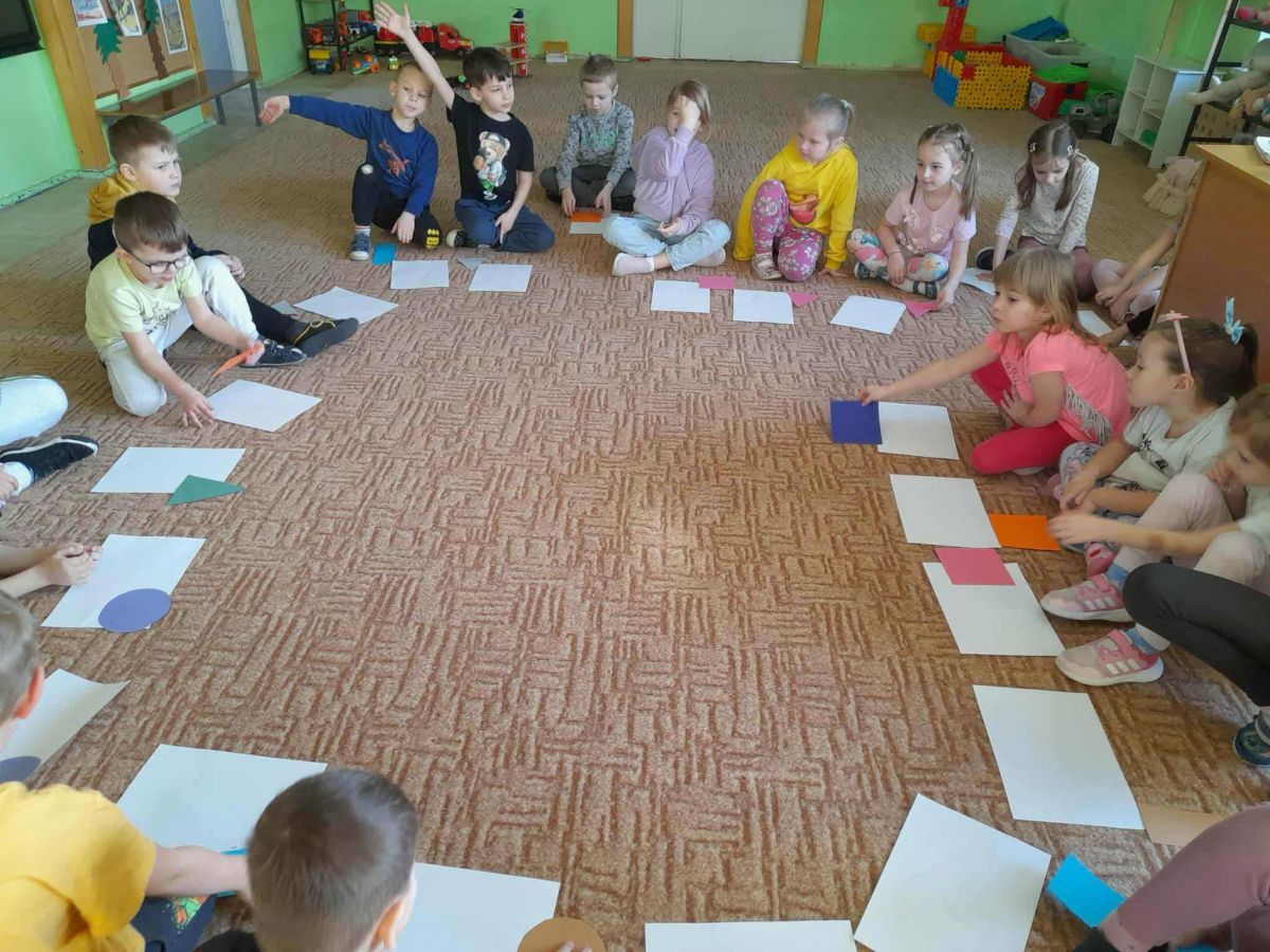 w trakcie tych zajęć i zabaw rozwijały swoje umiejętności podczas rozpoznawania kształtów figur, segregowania ich, doskonaliły orientację przestrzenną oraz sprawnie reagowały na sygnał słuchowy i wzrokowy.