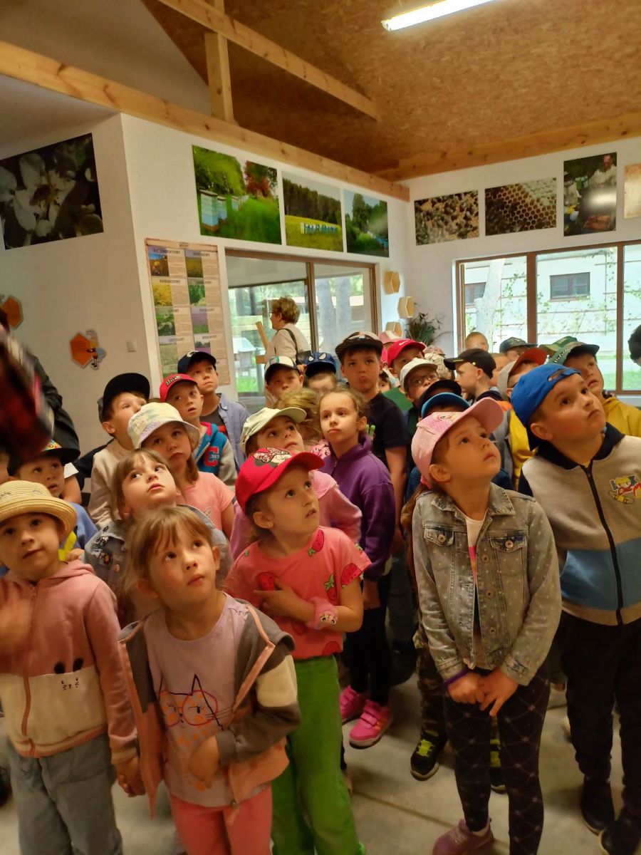 Dzisiaj najstarsze grupy przedszkolaków były na wycieczce w Gospodarstwie Agroturystycznym "Pszczeli Dworek". Poznały ciekawostki na temat pszczół, zobaczyły skansen uli figuralnych z płaskorzeźbami scen "Legend Świętokrzyskich" oraz degustowały pyszny miodek. W tym pięknym i urokliwym miejscu dzieci miały okazję zobaczyć daniele, pawie i bażanty. Przedszkolaki bawiły się na placu zabaw, gdzie jeździły na tyrolce i grały w piłkę. Na pewno tu jeszcze wrócą. ![]()