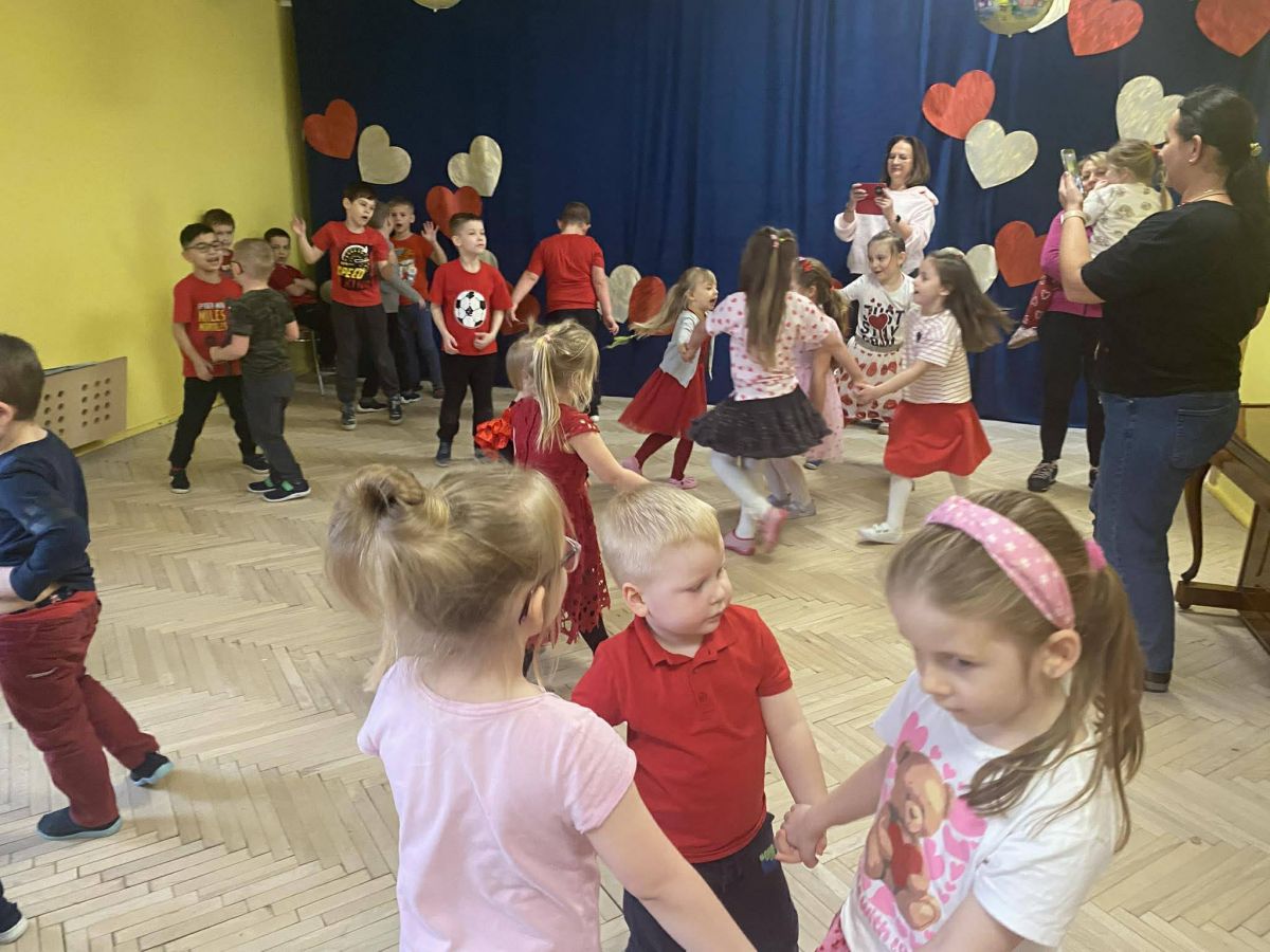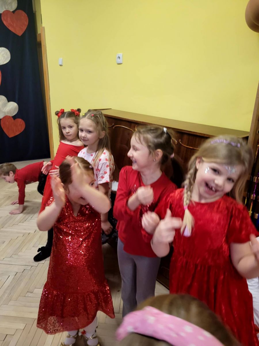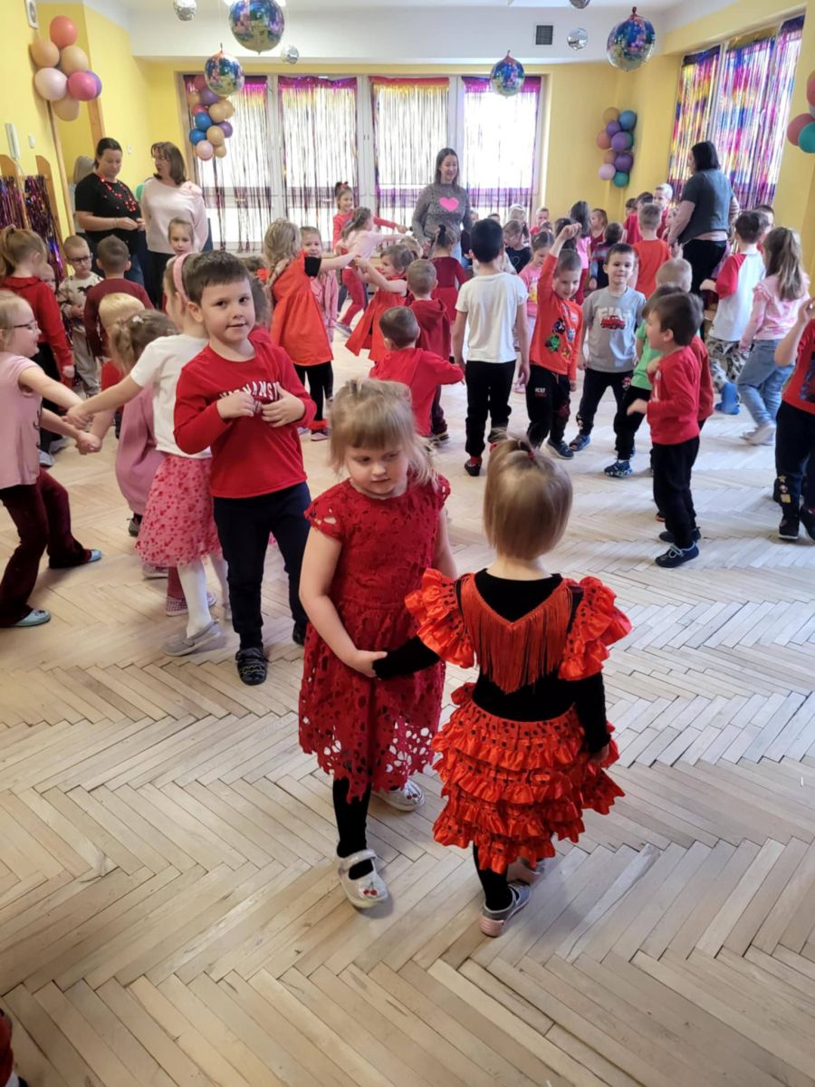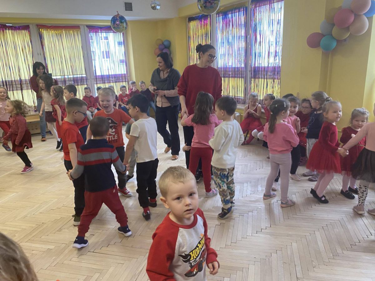 Tradycją stało się, że w naszym przedszkolu z okazji Walentynek odbywa się wystrzałowa dyskoteka. Dzieci, ubrane na czerwono, fantastycznie bawiły się przy dźwiękach wesołej muzyki. Dzień przepełniony był atrakcjami oraz pogadankami na temat znaczenia miłości i przyjaźni w naszym życiu.
