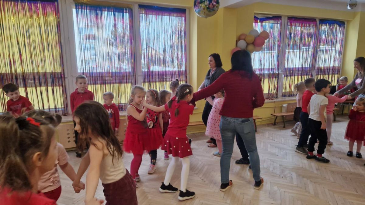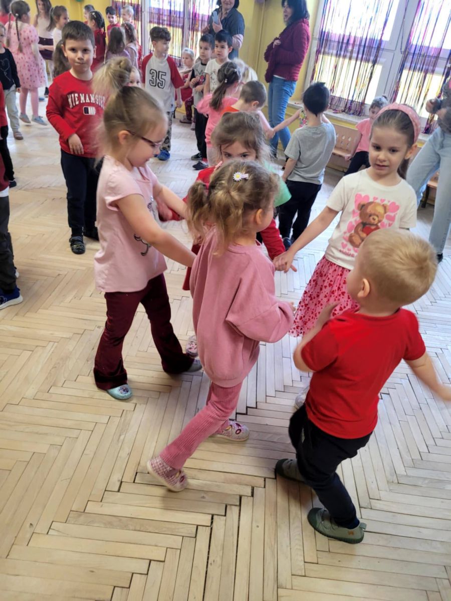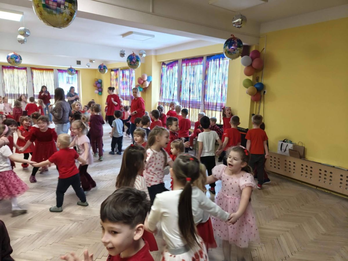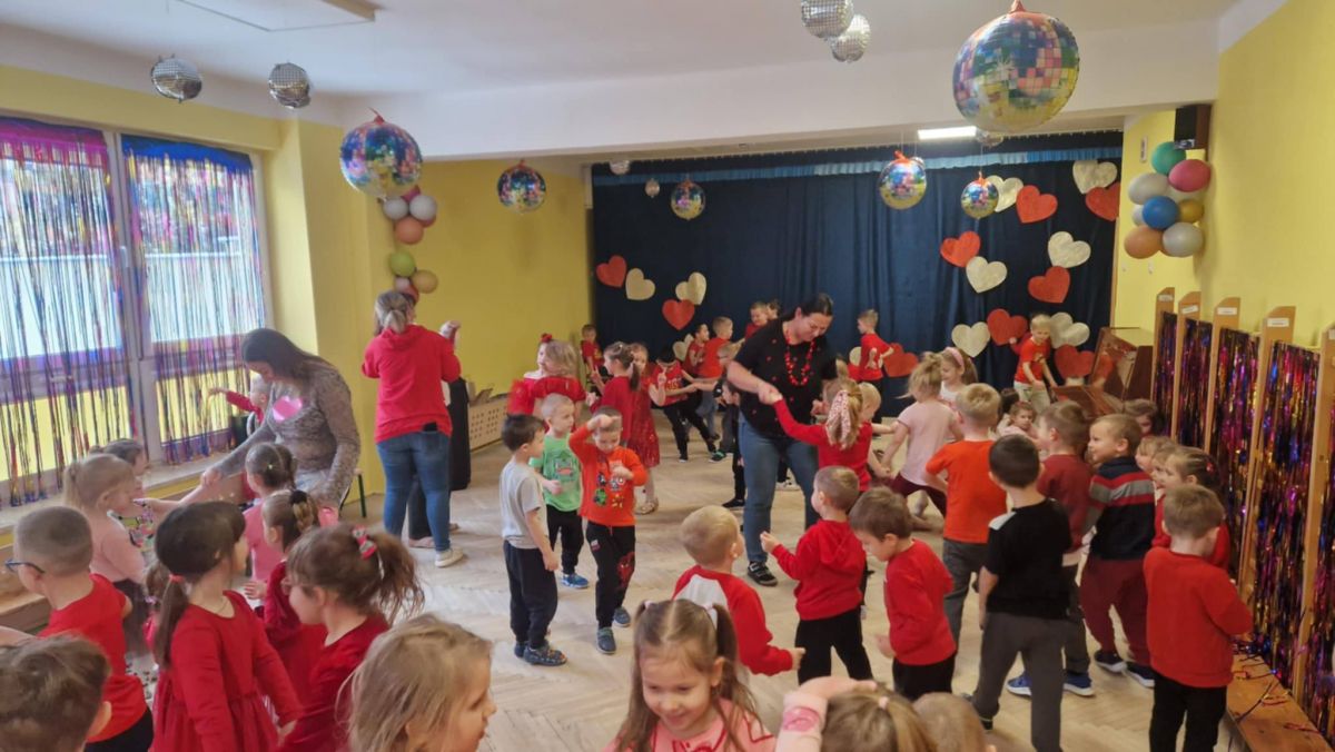 Tradycją stało się, że w naszym przedszkolu z okazji Walentynek odbywa się wystrzałowa dyskoteka. Dzieci, ubrane na czerwono, fantastycznie bawiły się przy dźwiękach wesołej muzyki. Dzień przepełniony był atrakcjami oraz pogadankami na temat znaczenia miłości i przyjaźni w naszym życiu.