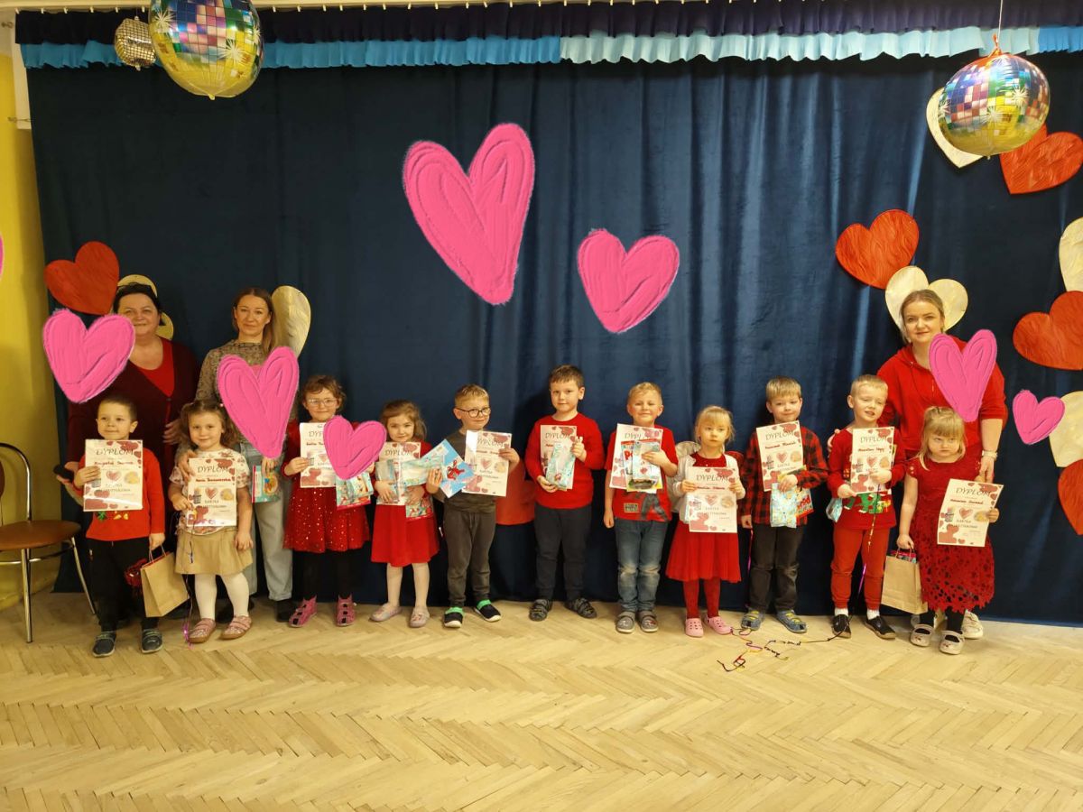 Zorganizowano konkurs najpiękniejszej kartki walentynkowej. Oczywiście, wszystkie dzieci, biorące udział, zostały wyróżnione.