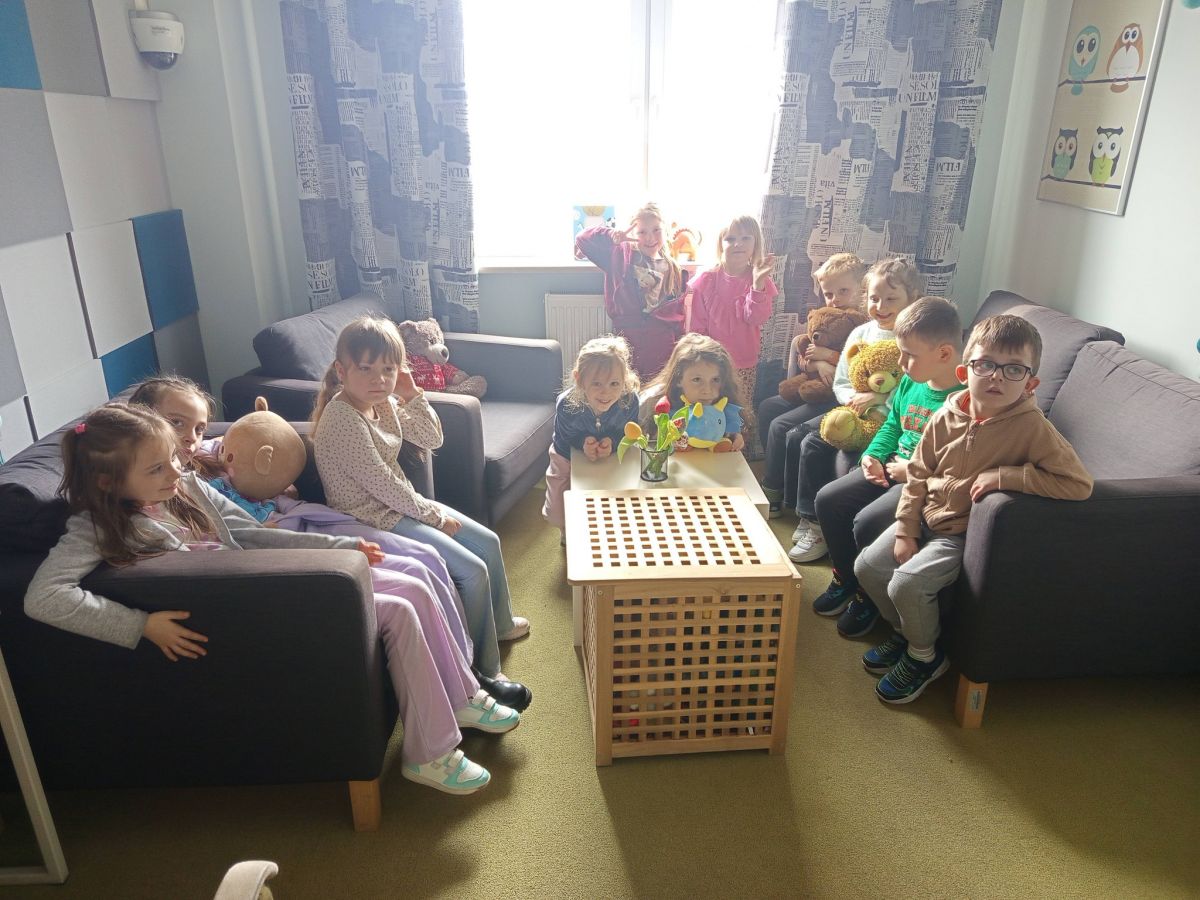 Szczególne zainteresowanie wzbudziła także informacja o tzw. „niebieskim pokoju”. Dzieci dowiedziały się, że jest to specjalne miejsce przygotowane z myślą o najmłodszych, w którym mogą czuć się bezpiecznie i komfortowo podczas trudnych rozmów. To ważna lekcja wrażliwości i troski o drugiego człowieka.