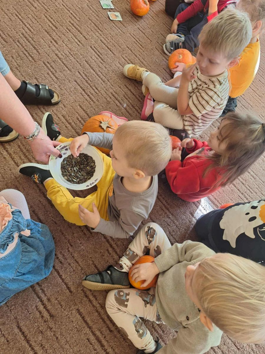Na zakończenie odbyła się degustacja dyniowych przysmaków – pestek oraz babeczek dyniowych. Dzieci z zaangażowaniem i radością uczestniczyły w zajęciach, ucząc się współpracy i wzajemnej pomocy.