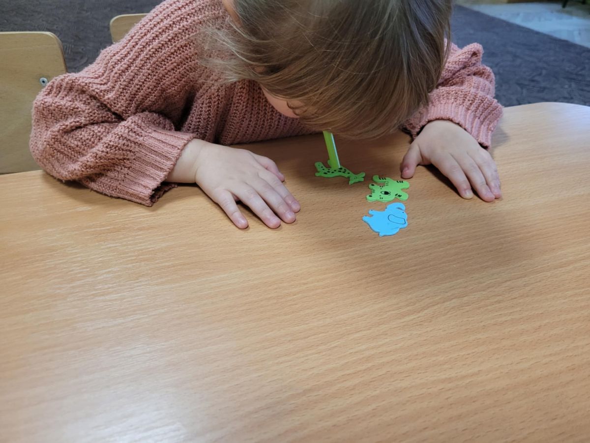 -przenoszenie piankowych zwierzątek za pomocą rurek – zadanie rozwijające siłę wydechu i kontrolę nad oddechem.