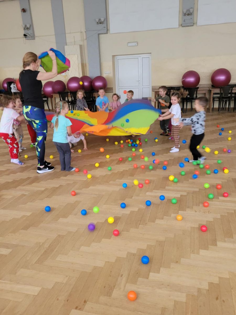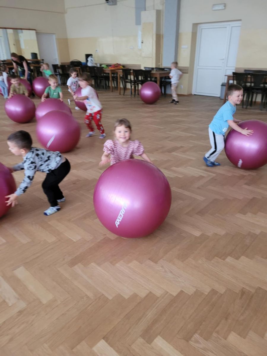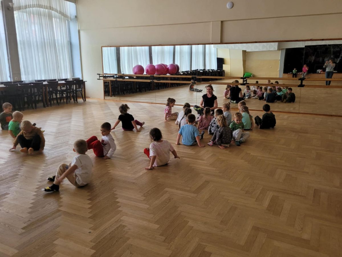 Dzieci z radością angażowały się w zabawę przy muzyce, doskonaląc koordynację ruchową oraz poczucie rytmu. Wspólne tańce sprzyjały integracji grupy, rozwijały ekspresję ruchową i sprawność fizyczną. Zajęcia przebiegły w radosnej atmosferze, a dzieci chętnie brały udział w proponowanych aktywnościach. ![]()