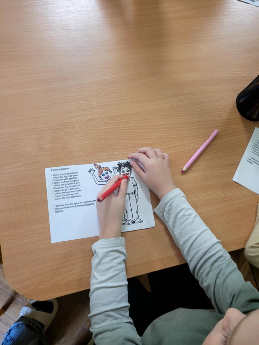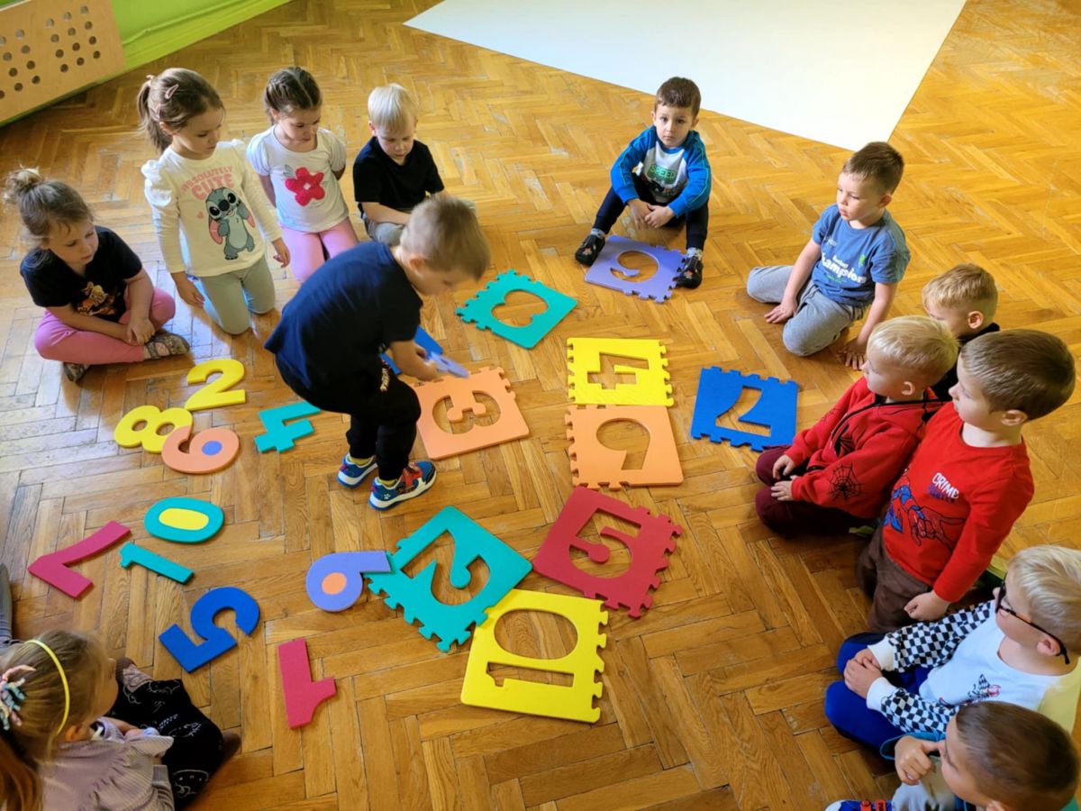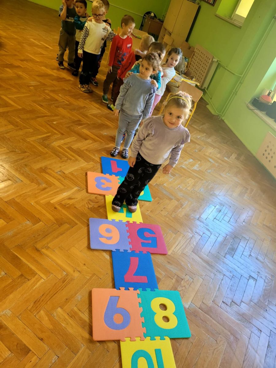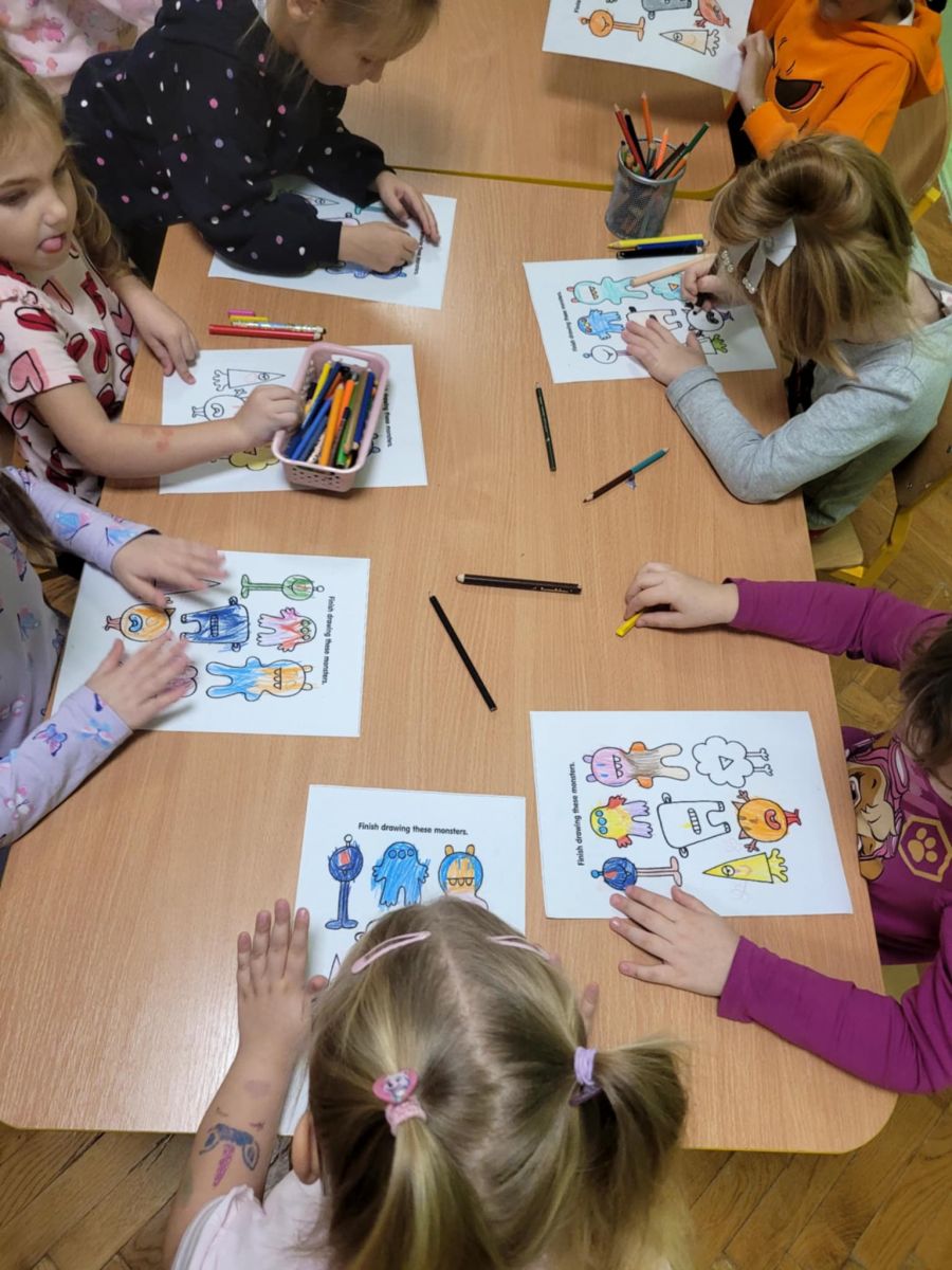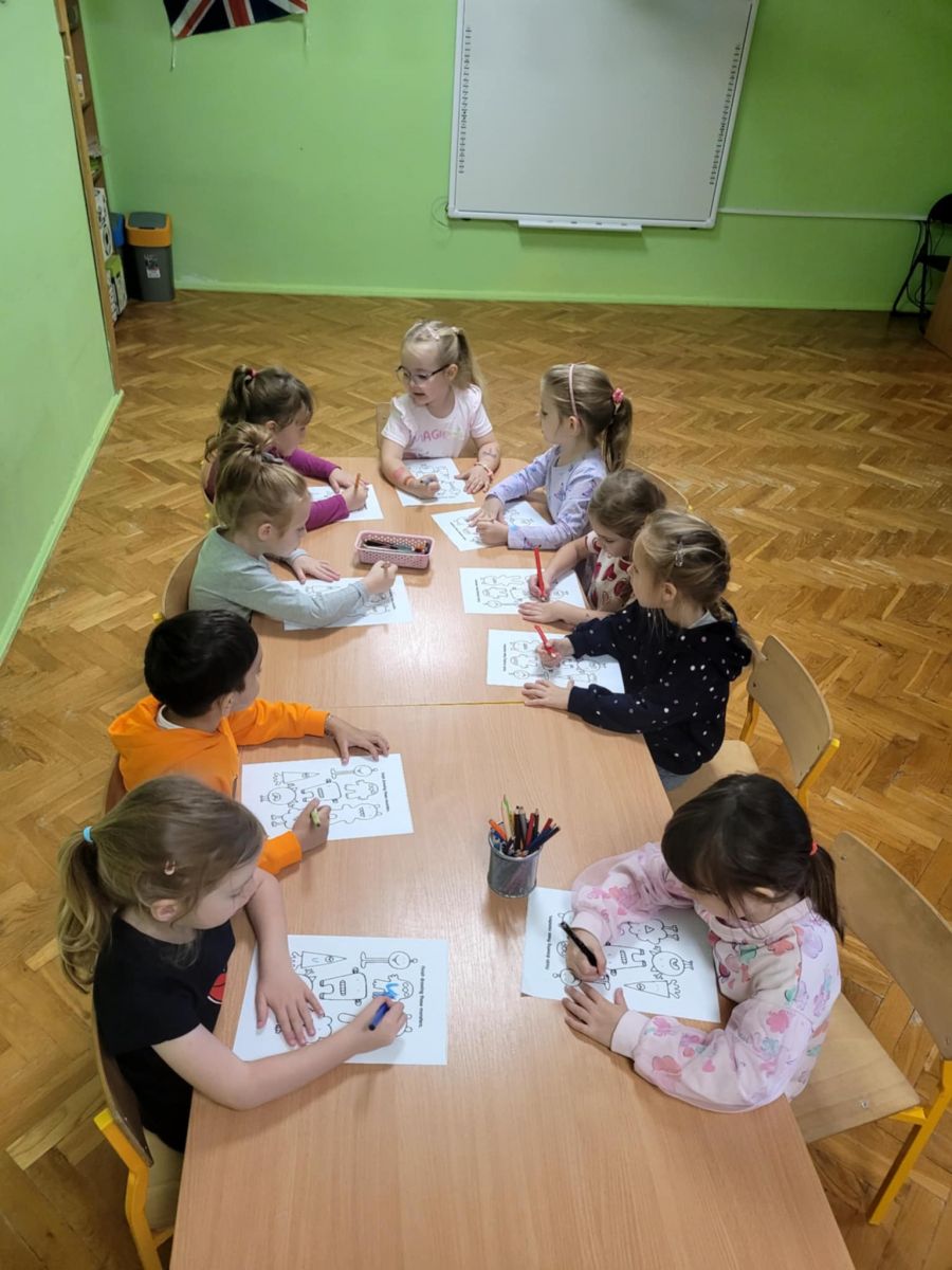 W październiku, podczas zajęć z języka angielskiego, dzieci poznały cyfry od 1 do 10 oraz nazwy części ciała. Poprzez metodę TPR (Total Physical Response) przedszkolaki mają możliwość poznawać słownictwo w formie ruchu i zabawy.
