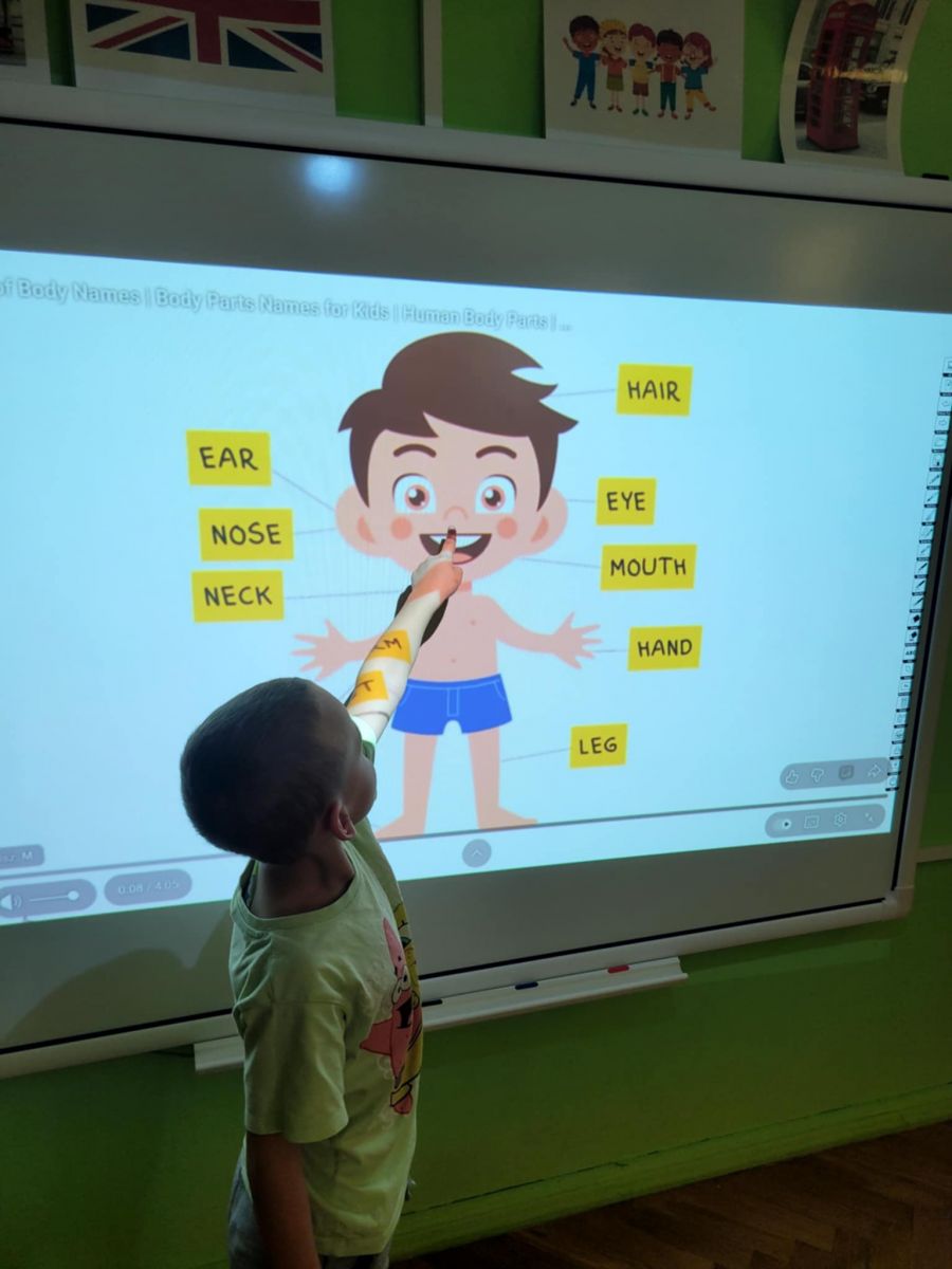 I October, during English classes the children learned the numbers from 1 to 10 and names of body parts. Throught the TPR method which we use the children learn New vocabulary through movement and play.