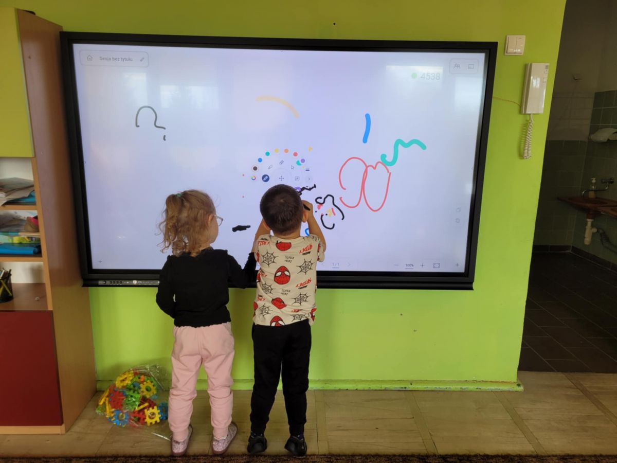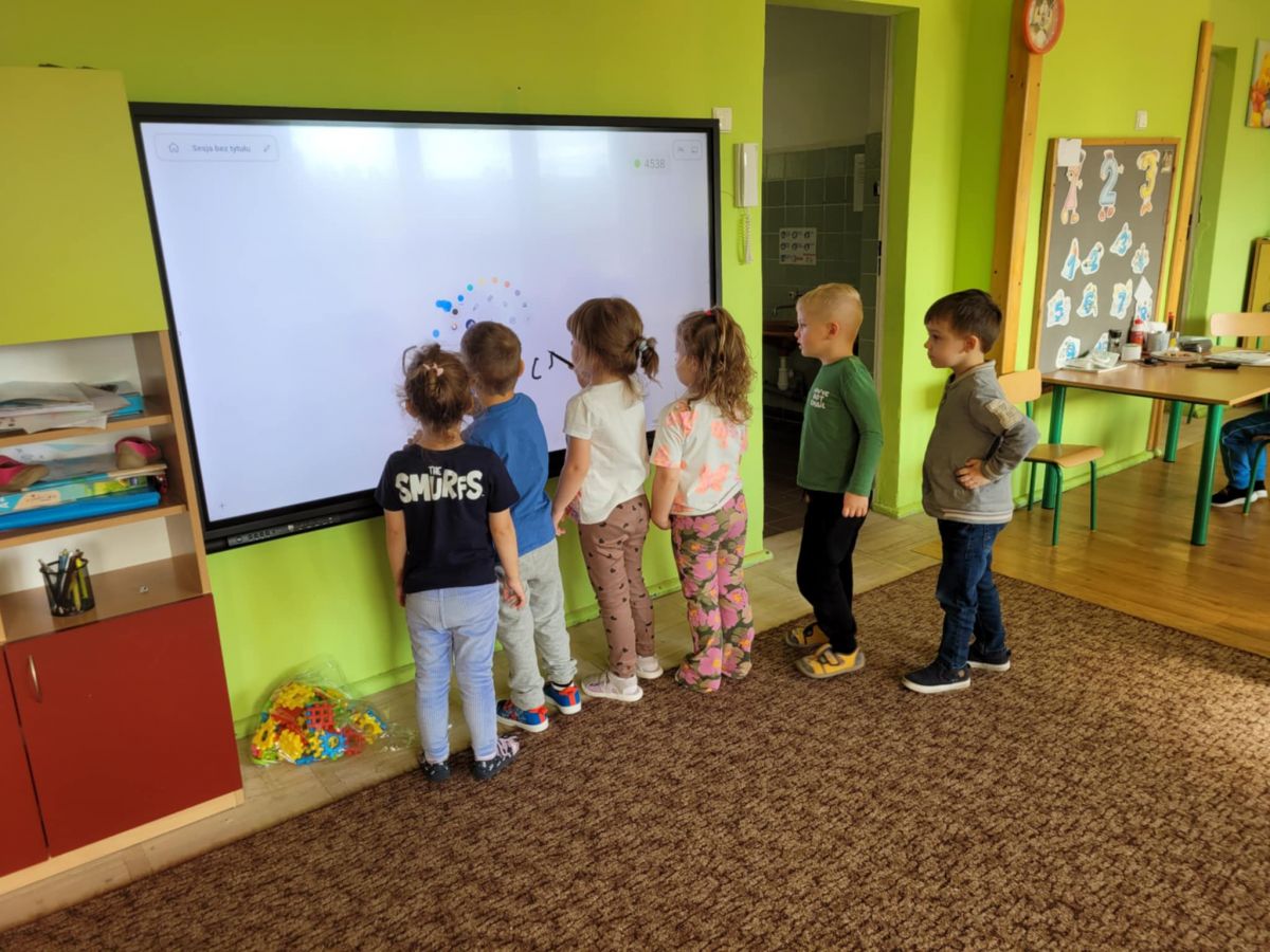Nowa forma nauki wzbudziła w nich duże zainteresowanie i entuzjazm. Przedszkolaki z radością brały udział w interaktywnych zabawach edukacyjnych, chętnie podchodziły do monitora i aktywnie uczestniczyły w zajęciach. To nowe doświadczenie było dla nich nie tylko atrakcyjne, ale również rozwijające. ![]()
