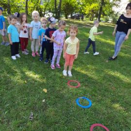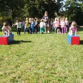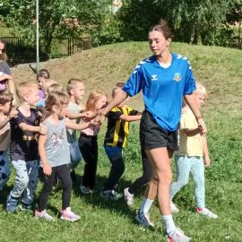 "Żyjmy zdrowo na sportowo" to hasło przewodnie dzisiejszego dnia. W ramach XV Europejskiego Tygodnia Sportu wszystkie dzieci zamieniły się w małych sportowców. Były zabawy ruchowe, rekreacyjne, biegi i gra z piłką. Przedszkolaki uczestniczyły w treningu z profesjonalnymi trenerami: panią Oliwią Masternak i panem Konradem Grzesiukiem z Klubu Sportowego "Orlęta Kielce". Dzieci z uśmiechem i wytrwałością pokonywały przeszkody, chętnie ze sobą rywalizowały. Dziękujemy Klubowi Sportowemu "Orlęta Kielce" oraz Trenerom za zorganizowanie fantastycznego Dnia Sportu. Koordynatorem projektu była Pani Renata Ciupińska.